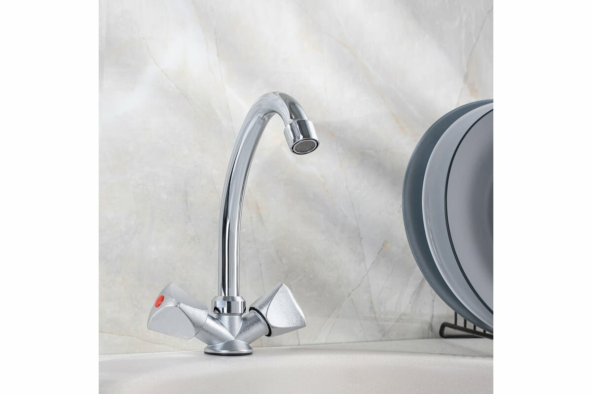 Отличный бюджетный шаровый кран, который замечательно подойдет для кухонной мойки небольшого размера из металла (с керамикой могут быть проблемы с монтажом, поскольку стандартное отверстие 35мм, кран же имеет посадочное место 38мм). Крепление на одной шпильке. Даже при максимальной напоре воды не шумит. В комплекте идет подводка, но в большинстве своем ее не достаточно. Аэратор съемный. В уходе неприхотлив. При обработке моющими и чистящими средствами покрытие не слезает, цвет не меняет.