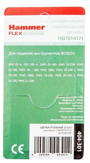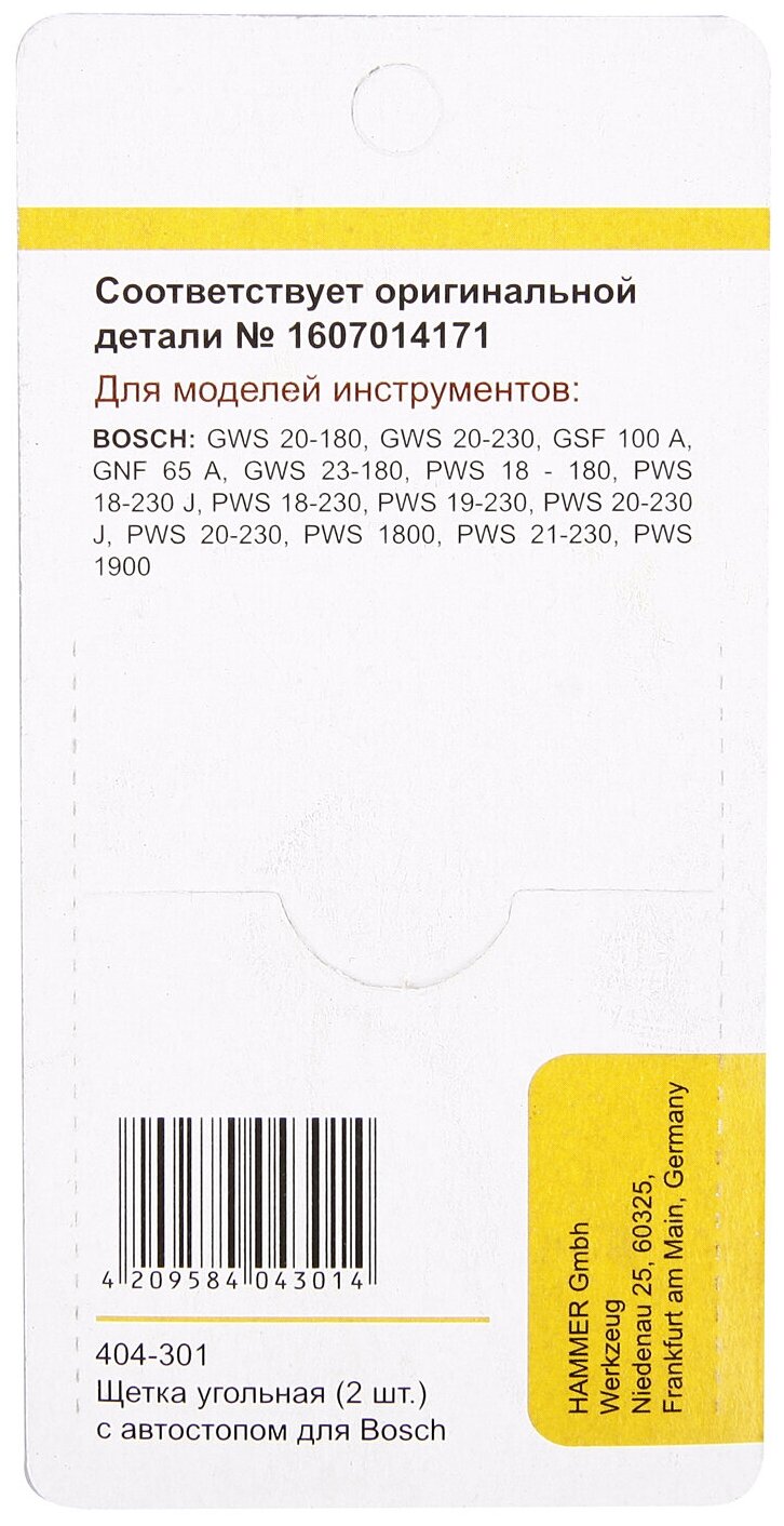 Щетки угольные для Bosch 63х16х22 мм Hammer