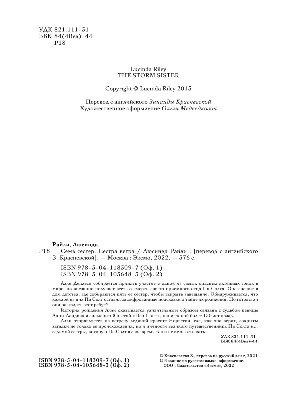 Семь сестер. Сестра ветра (Люсинда Райли); Эксмо, Редакция 1, 2024