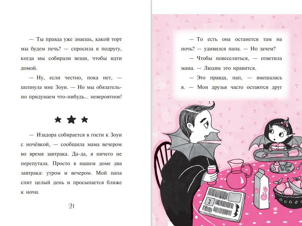 Отправиться в гости с ночёвкой — Изадора так мечтала об этом! И вот её подруга Зоуи пригласила её на пижамную вечеринку! Вместе они будут не только веселиться и играть, но и печь вкусный-превкусный торт! А всё потому, что девочки очень хотят выиграть в школьном кулинарном конкурсе. Масло, сахар, крем и… магия — вот рецепт самого грандиозного торта в мире! Но честно ли использовать волшебство, если другие ребята всё делают сами? Изадора в этом совсем не уверена. С другой стороны, Зоуи ужасно расстроится, если они не выиграют… Как же теперь быть?