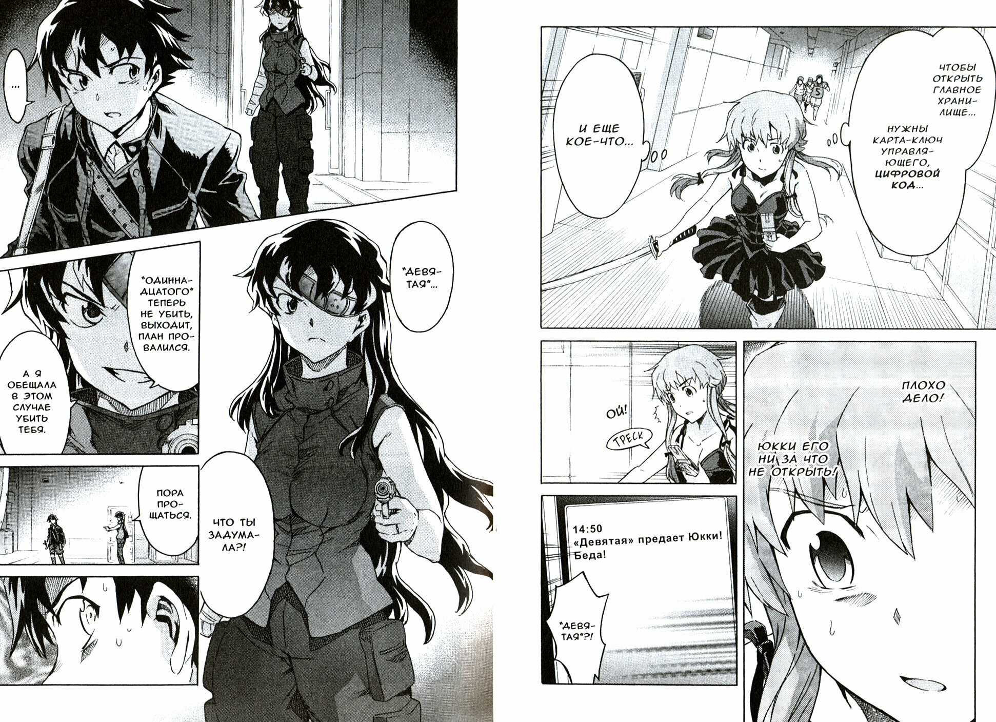 У ничем не примечательного ученика средней школы Юкитэру Амано есть одно хобби - он ведет в своем телефоне дневник, куда записывает все, что происходит вокруг. Однажды утром он обнаруживает в нем записи из будущего. Поначалу Юкитэру не нарадуется открывшимся перед ним перспективам, но в один прекрасный день он натыкается на описание собственной смерти. Как оказалось, Юкитэру, сам того не подозревая, стал одним из двенадцати владельцев дневников будущего - участников беспощадной игры на выживание, организованной всемогущим повелителем времени и пространства. Удастся ли ему пройти игру? И может ли он довериться странной однокласснице Юно, заявившей, что они с ним обречены быть вместе?