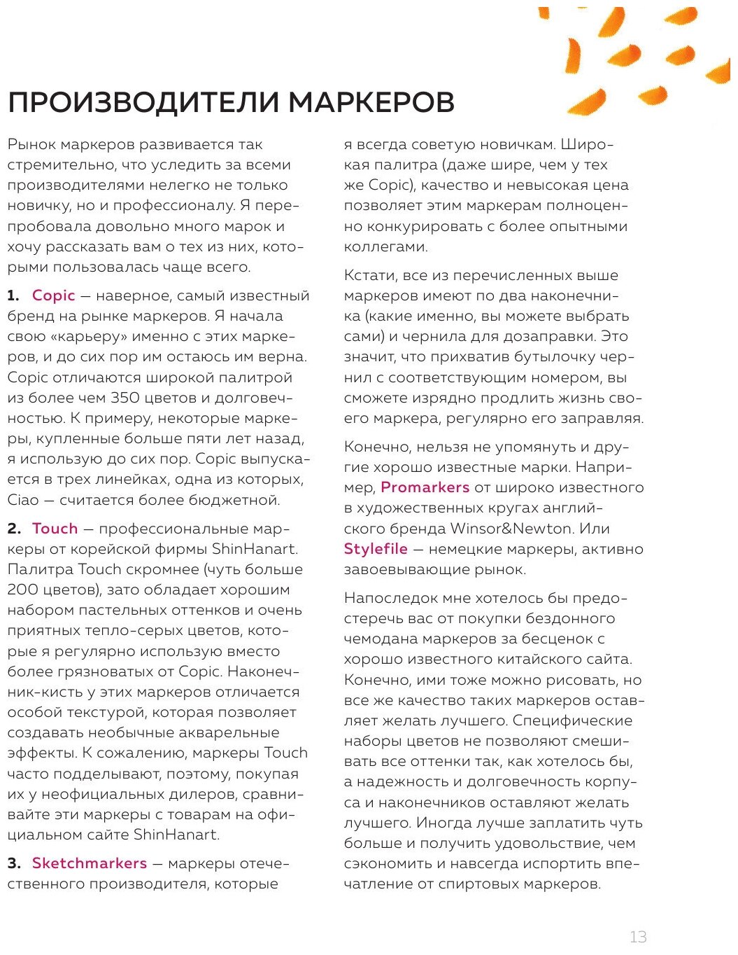 Книга стоит своих денег! Толстенькая, в твердой обложке и с очень плотными страницами. Мастер-классы подробны, с множеством шагов. Мотивы раскрасок с одной стороны листа, вторая чистая. Всё понравилось! Учитывая, что появились спиртовые маркеры MAZARI по очень демократичным ценам, берите, не раздумывая.