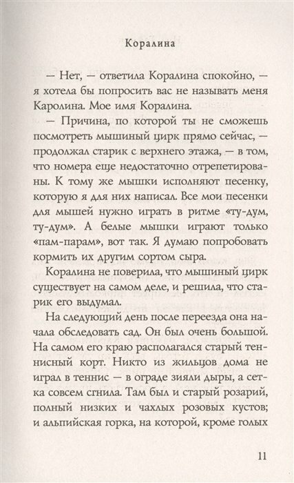 Мистическая сказка, местами становится даже страшно! В "Коралину" ныряешь с головой, погружаешься в местами пугающую атмосферу тайн...