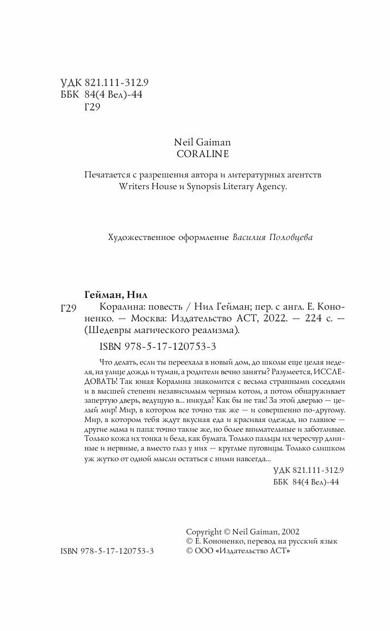 Книга: Коралина (Гейман Нил); ИЗДАТЕЛЬСТВО "АСТ", 2020