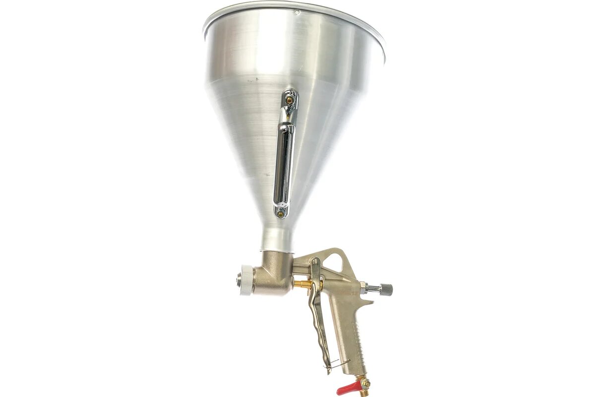 Картушный пистолет с алюминиевым верхним бачком. Используется с пневмокомпрессором. Предназначен для нанесения жидких и полужидких строительных смесей. Значительно ускоряет ведение штукатурных работ. Имеет возможность регулировки расхода строительных смесей.