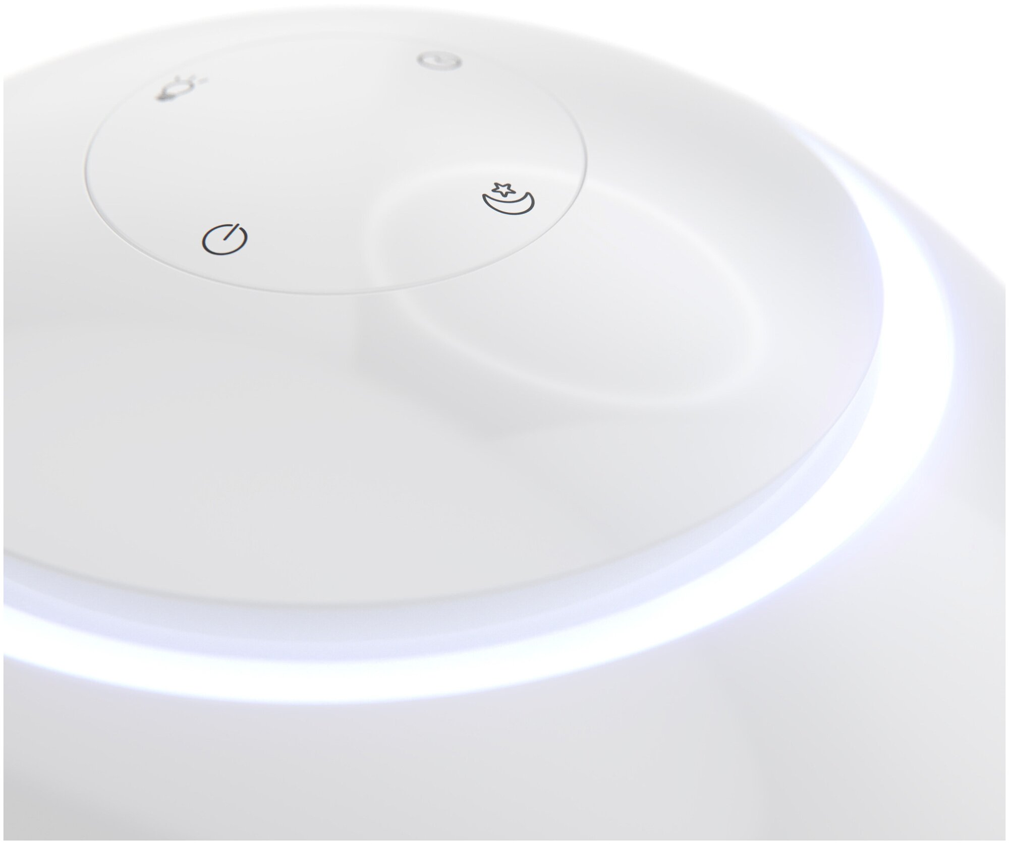 - Прост в эксплуатации. Удобно заливается вода в резервуар, удобно мыть. По уровню шума в пределах нормы. Единственное булькает в процессе работы, но детям это не мешает. Приятная подсветка, можно использовать как ночник.