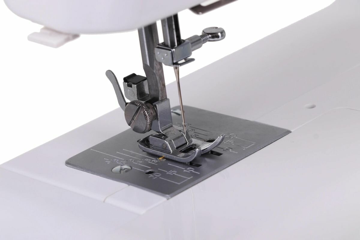 | Прочие особенности и свойства | Лапка стандартная , Лапка для выметывания петель , Лапка для молний , Защита пальцев при шитье, Шьет любые материалы, Шитье двойной иглой, "Свободный рукав", Регул. длины стежка ступенчатая , Позиционирование иглы ручное , Макс. высота подьема лапки 6 мм , Регул. скорости шитья плавная, Регул. натяжения нити плавная , Реверс Да , Тип управления механический , Размер педали 4*8*8 см , Материал педали пластик , Прорезинен. ножки педали Да , Длина кабеля педали 1.4 м, Материал корпуса пластик , Отсек для аксессуаров , Ручка для переноски , Прорезиненные ножки |