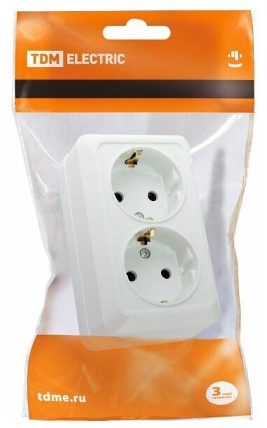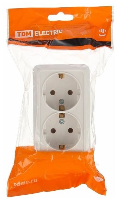 Розетка TDM SQ1801-0019 двойная 2П+3 открытой установки IP20 16А белая ладога