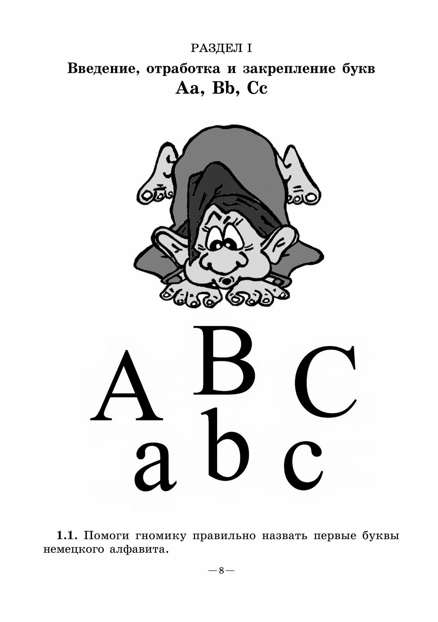 Данное пособие предназначено для учащихся 1–2 классов, которые только приступают к изучению немецкого языка. Его цель — обучить детей фонемному и графемному образу немецкого алфавита, создав тем самым прочную базу для обучения чтению. Все задания в этой книге даны в игровой форме. Материал пособия разбит на 9 блоков, каждый из которых включает в себя 5–7 упражнений, предполагающих введение, отработку и закрепление новых букв немецкого алфавита и повторение уже изученных. Упражнения в каждом блоке построены по возрастающей степени сложности: задания на узнавание и вычленение той или иной буквы из ряда букв, на соотнесение заглавных и прописных букв сменяются заданиями на их письменное воспроизведение. Пособие может использоваться как в работе на уроке, так и при домашнем индивидуальном обучении.