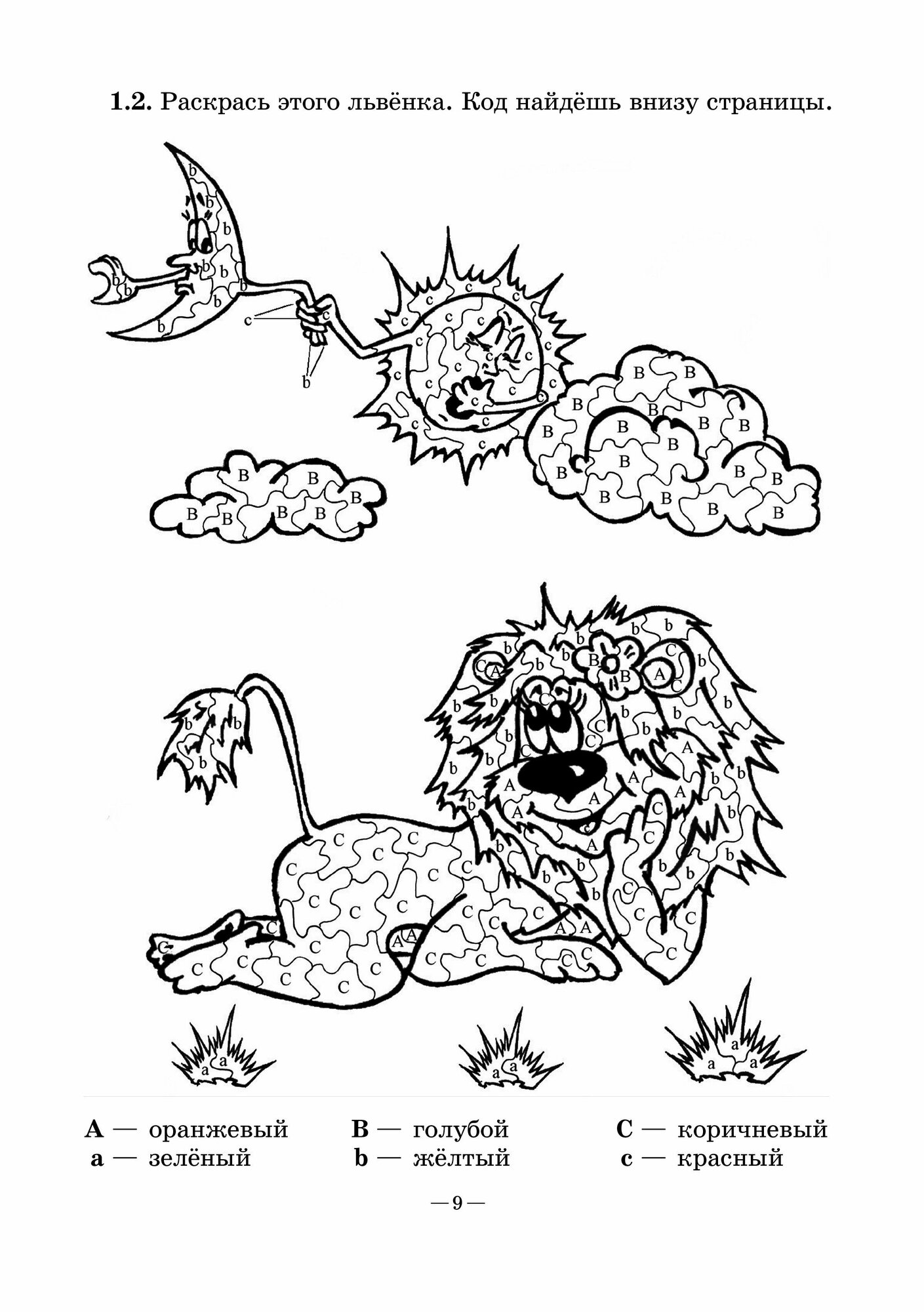 Книга большого формата, страниц 55, страницы черно-белые качества обычной большой раскраски. Задания интересные: раскрась буквы, найди слово, пройди лабиринт. Подобные задания мой 8-ми летний сын выполняет на уроке немецкого в школе с углубленным изучением немецкого языка (первый год обучения). Детям такие задания нравятся.
