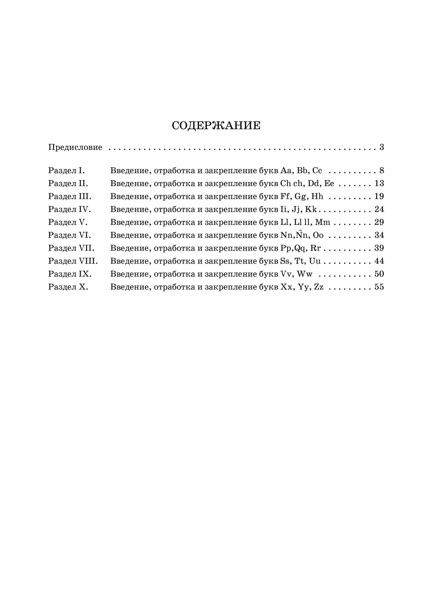 Данное пособие предназначено для учащихся 1-2 классов, которые только приступают к изучению испанского языка.Его цель - обучить детей фонемному и графемному образу испанского алфавита, создав тем самым прочную базу для обучения чтению.Все задания в этой тетради, предложенные в игровой форме, разбиты на 9 блоков, каждый из которых включает в себя 5-7 упражнений, предполагающих введение, отработку и закрепление трех новых букв испанского алфавита и повторение уже изученных. Упражнения в каждом блоке построены по возрастающей степени сложности: задания на узнавание и вычленение той или иной буквы из ряда букв, на соотнесение заглавных и прописных букв сменяются заданиями на их письменное воспроизведение.Пособие может использоваться как в работе на уроке, так и при домашнем индивидуальном обучении.