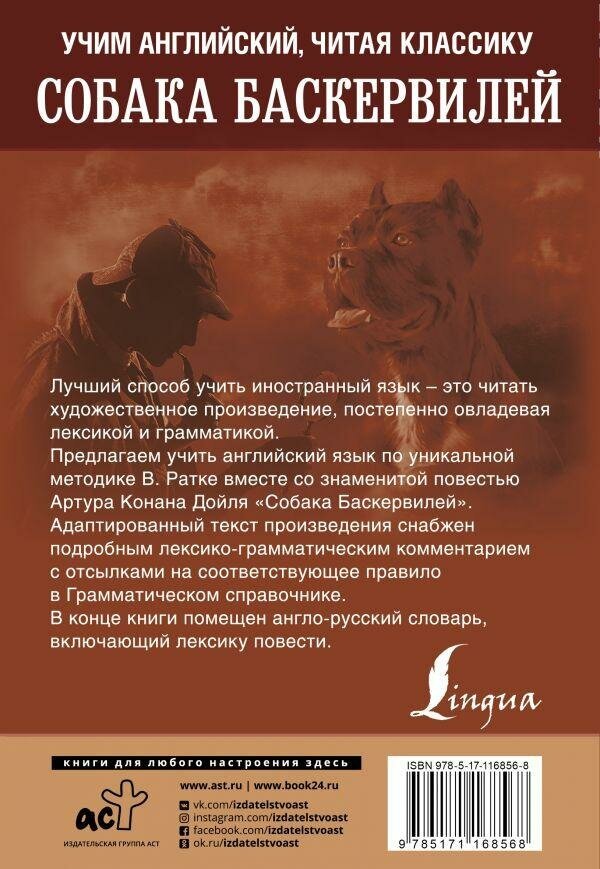 Лучший способ учить иностранный язык – это читать художественное произведение, постепенно овладевая лексикой и грамматикой. Предлагаем учить английский язык вместе со всемирно известной детективной историей Артура Конан Дойла "Собака Баскервилей". Адаптированный текст произведения снабжен подробным лексико-грамматическим комментарием, расположенным на полях и содержащим ссылки на соответствующее правило грамматики. Объем грамматического справочника, следующего сразу за романом, соответствует уровню выше среднего, поэтому им можно успешно пользоваться и в дальнейшем. В конце книги помещен англо-русский словарь, содержащий лексику произведения. Издание предназначено для всех, кто начал и продолжает учить английский язык, кто стремится читать книги на английском.