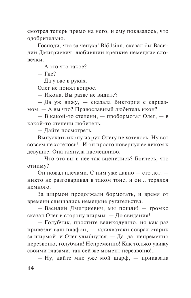 Вот сейчас, в этот самый миг, в это самое мгновенье, когда он должен принять судьбоносное решение, Олег Петрович испугался. Испугался и подумал: зачем ему это нужно?! Эта женщина, эта новая жизнь?! Но события последних дней все перевернули, все поставили с ног на голову… Икона с ликом Преподобного Серафима Саровского, которая словно сама попала к нему в руки, кража из музея уникальной демидовской коллекции, убийство его старого приятеля антиквара Василия Дмитриевича… Ясно как божий день — все это было предопределено. Предопределено кем-то свыше. Кем-то, кто послал ему на жизненном пути эту женщину…