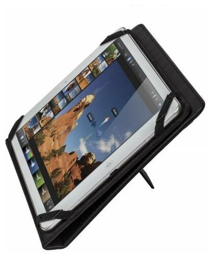 | Прочие особенности и свойства | Универсальный чехол для планшетов до 10.1 (Acer Iconia Tab A3-A30 / Apple iPad Air 2 / Asus ZenPad 10 Z300C / Lenovo TAB 2 A10-70L / Samsung Galaxy Tab S2 / Sony Xperia Z4 Tablet)., , Чехол выполнен с использованием различных материалов:, материал верха - высококачественный полиуретан;, внутренний материал контактирующий с тачскрином - микрофибра., , В качестве крепления используется высококачественная эластичная лента с противоскользящей накладкой. Легко устанавливать и вынимать планшет., , Планшет фиксируется в одном положении в режиме просмотра с помощью специальной подставки. Подставка, когда не используется, удерживается на внутренней стороне чехла с помощью магнита, не царапая корпус планшета., , Эластичная лента фиксирует чехол в закрытом состоянии., Свободный доступ ко всем кнопкам, разъемам и динамикам. |
