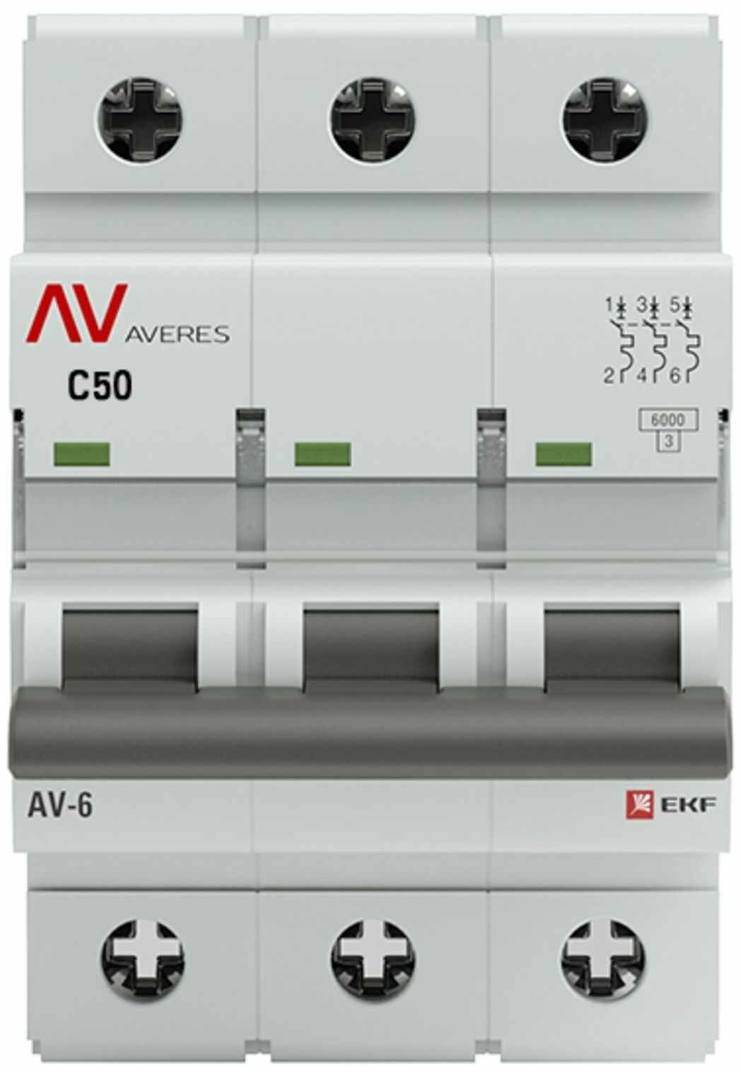 mcb6-3-50C-av Выключатель автоматический AV-6 3P 50A (C) 6kA AVERES EKF