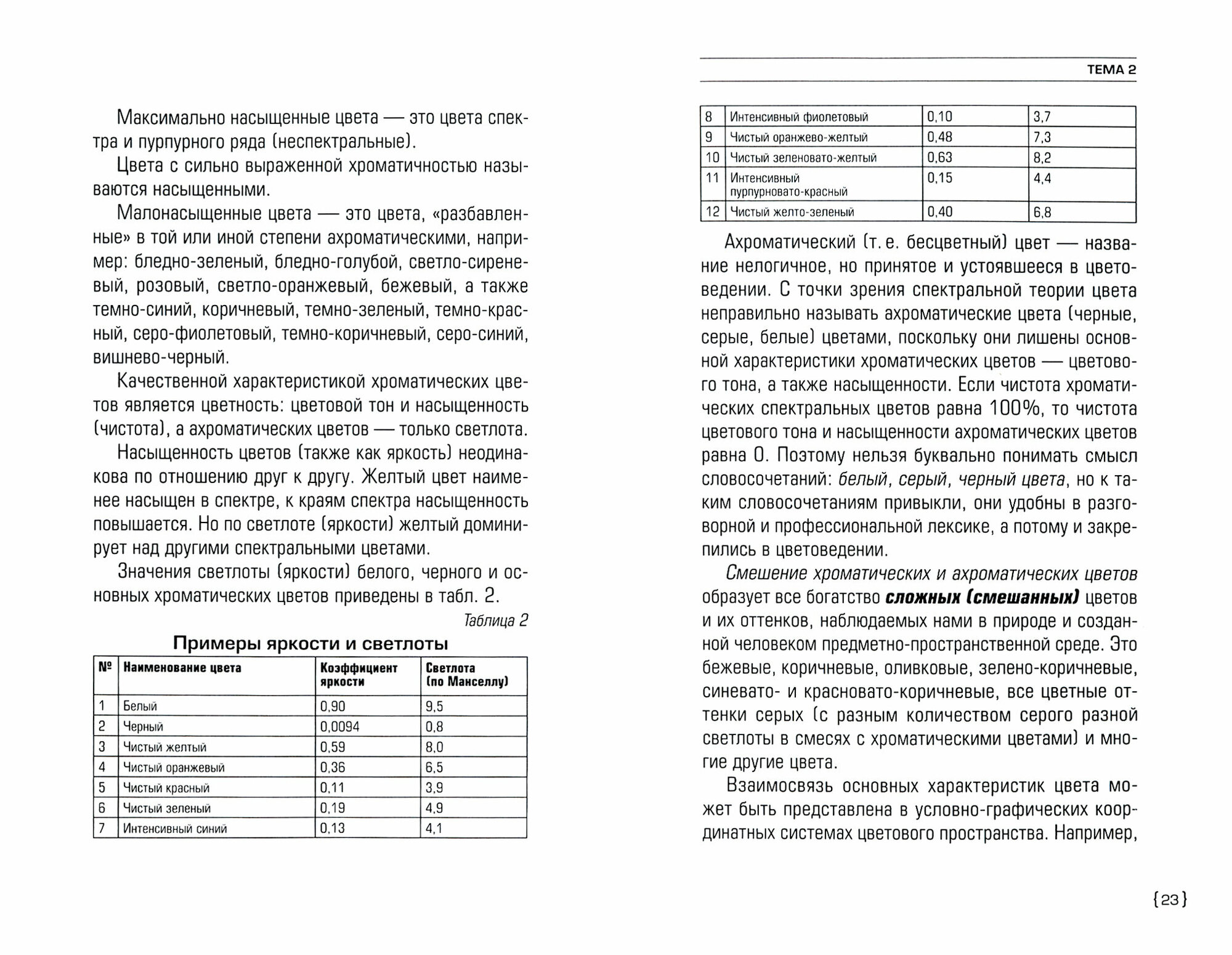 В курсе лекций, посвященном систематизированному изложению основ цветоведения и колористики, рассматриваются и объясняются аспекты этой дисциплины с позиции физики (ее раздела - оптики), математики, психологии зрения, психологии цветовосприятия, эстетики, теории композиции. Особое внимание уделено типологии цветовых гармоний, принципам их применения в дизайн-проектировании и роли цвета в композиции разных объектов дизайна. В приложениях к лекциям приведены таблицы, рисунки, схемы, а также требования к выполнению практических заданий по колористике.