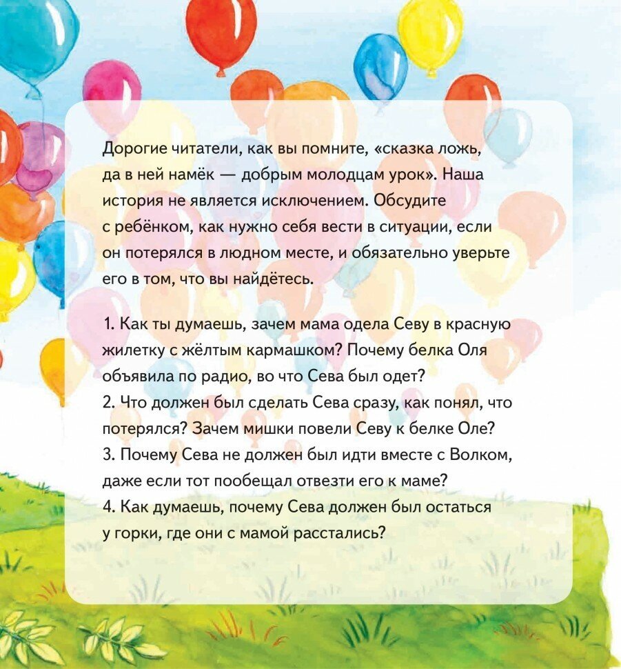 Сама сказка просто чудесная! Ребенок постоянно просит почитать. В ней рассказывается об основных правилах поведения, если ты потерялся. В конце книги даже есть некое резюме этих правил.