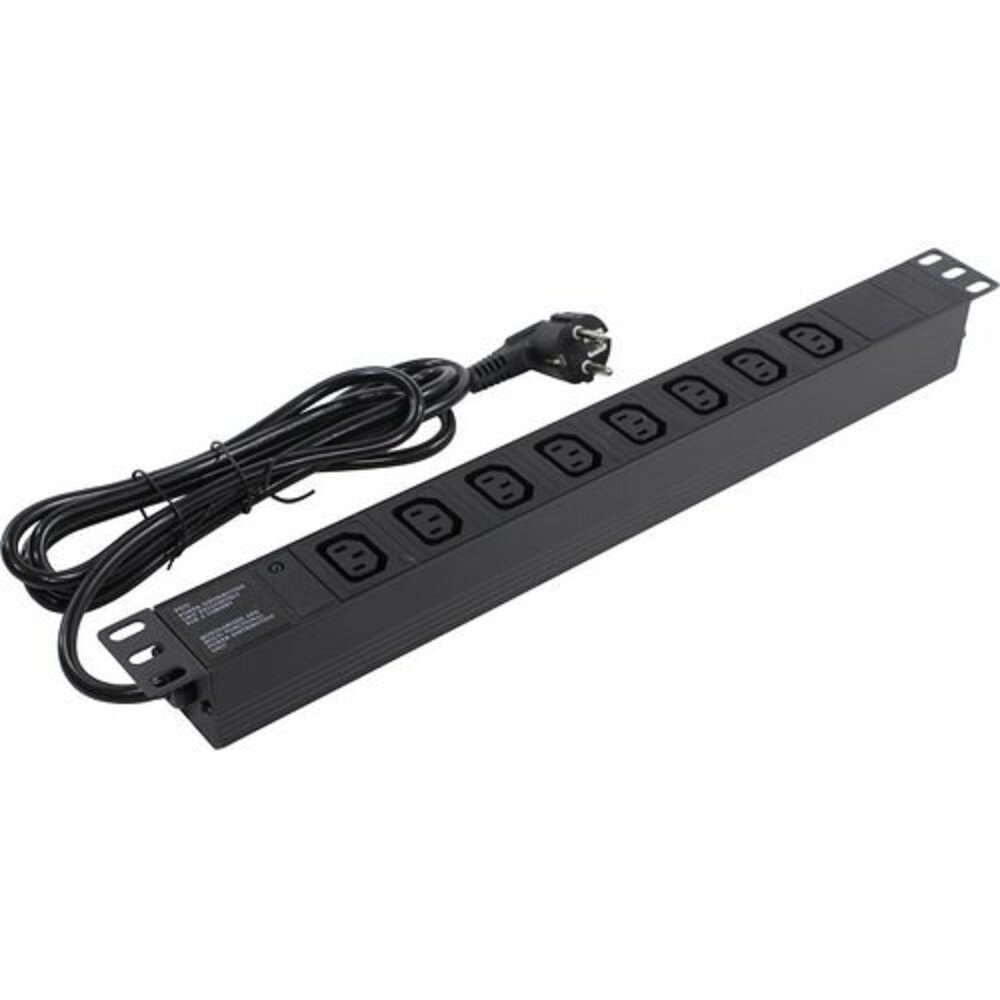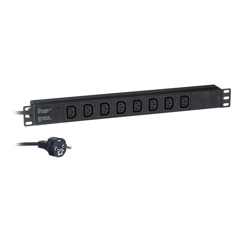 | Прочие особенности и свойства | Высота 1U, Установка в стойку 19", Сечение проводников в кабеле питания 3х1.5 мм2, Кол-во выходных розеток - 8 компьютерных (IEC-320-C13) |