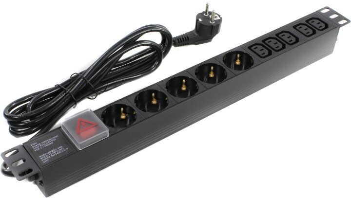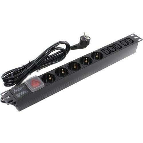 | Прочие особенности и свойства | Кол-во выходных розеток 5 компьютерных (IEC-320-C13), 5 розеток евростандарт с заземлением, Высота 1U, Установка в стойку 19", Выключатель с подсветкой и крышкой, Площадь сечения проводника - 3 x 1.5 мм2 |