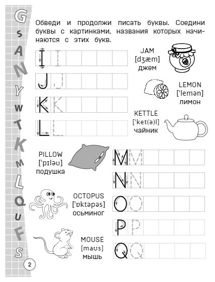 Основная цель пособия - быстро запомнить английский алфавит и научиться писать буквы и слова. Простые и занимательные задания, сгруппированные по темам, станут для малыша увлекательной игрой и привьют ему интерес к дальнейшему обучению. В конце книги имеется проверочная работа, которая позволит оценить качество знаний. Выполняя развивающие интерактивные задания всего 20 минут в день, ребёнок будет уверенно владеть карандашом и ровно и красиво писать английские буквы и слова.