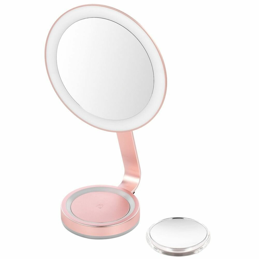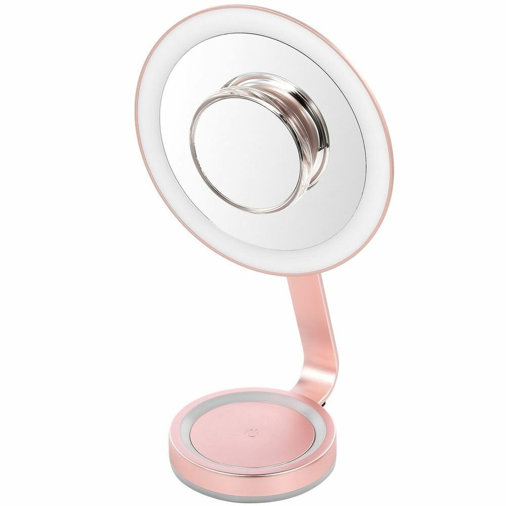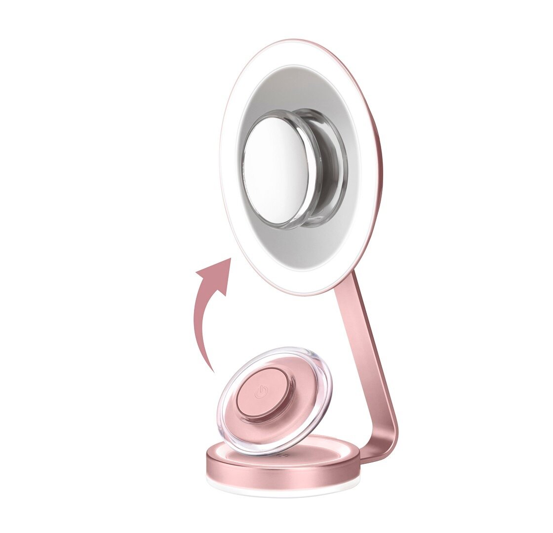 Зеркалом очень довольна. Очень необычный дизайн - маленькое зеркальце крепится на магните. Диаметр большого зеркала достаточный для макияжа, маленькое использую только если очень сильно нужно что-то увеличить. Подсветка яркая, холодная, сразу понятно, как макияж будет выглядеть при дневном освещении.