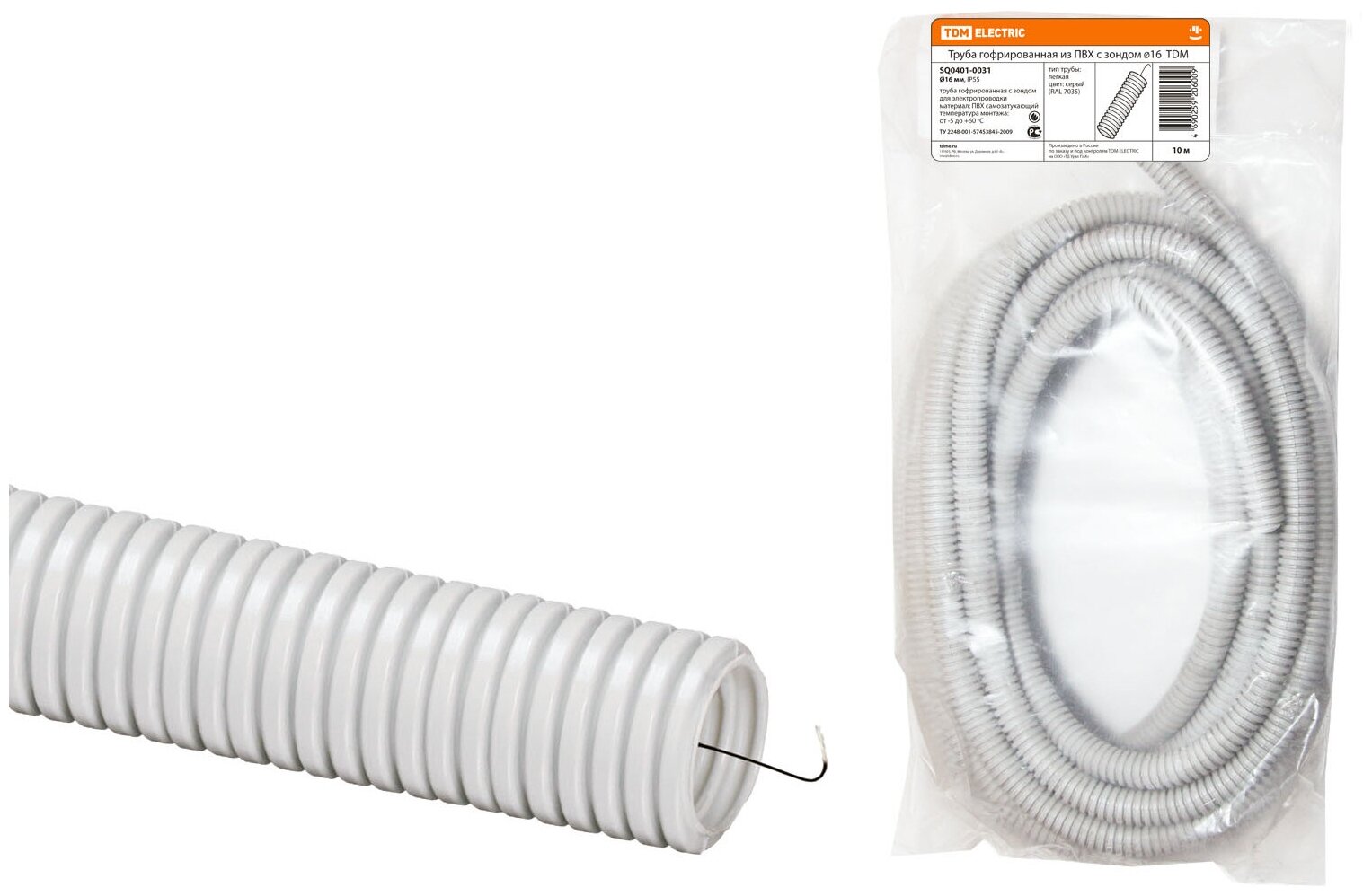 Труба TDM SQ0401-0031 гофр.пвх D16 с зондом 10м легкая