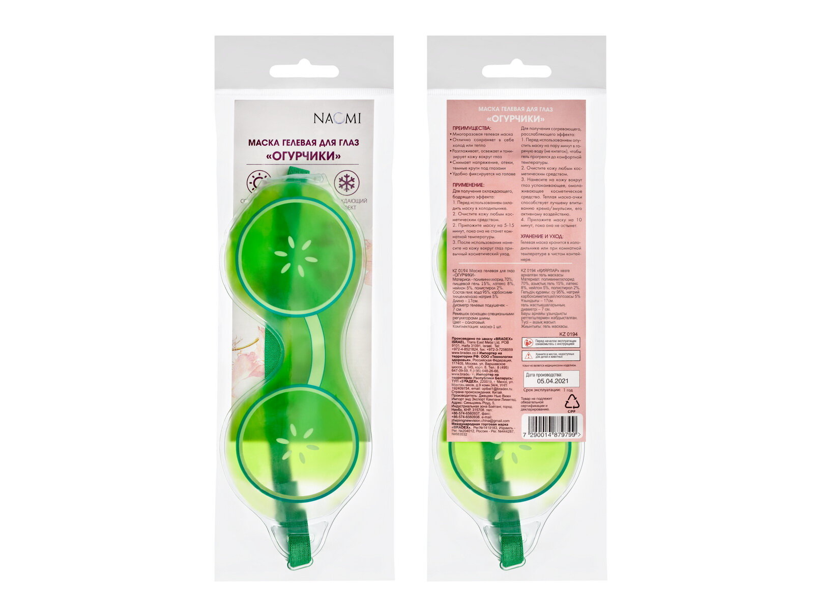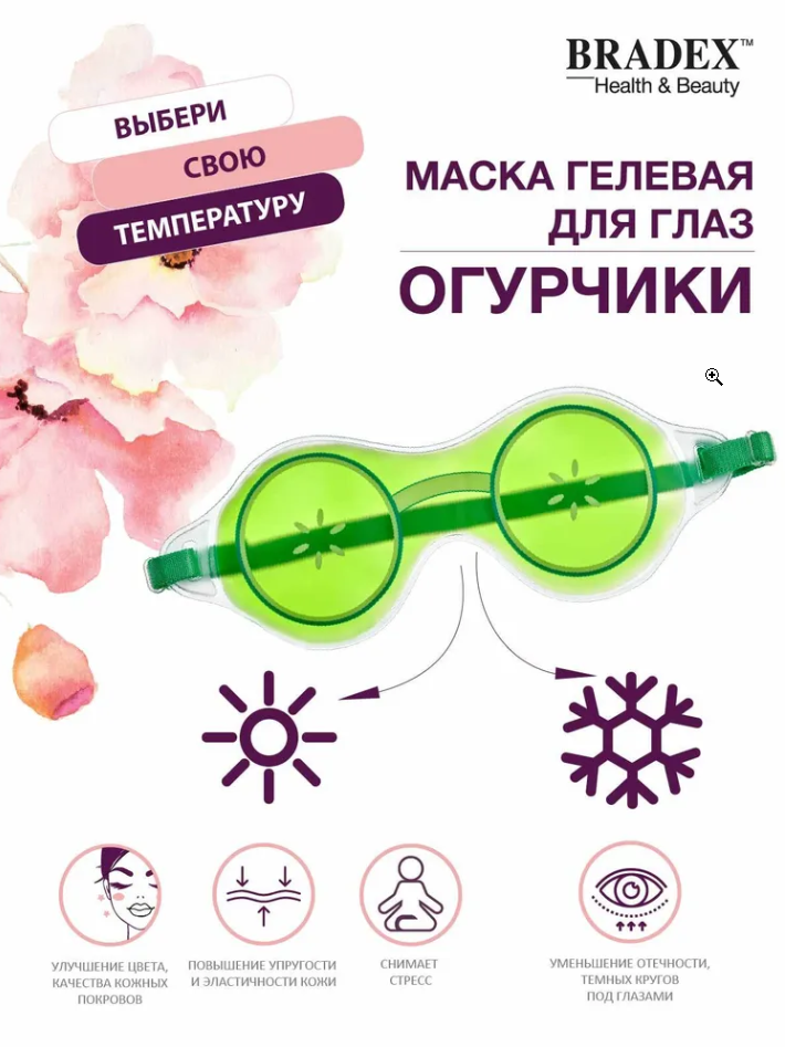 На сегодняшний день товар «Маска гелевая для глаз «ОГУРЧИКИ» KZ 0194 BRADEX (размер: M)» можно купить с кешбеком в 1 магазине: Яндекс.Маркет