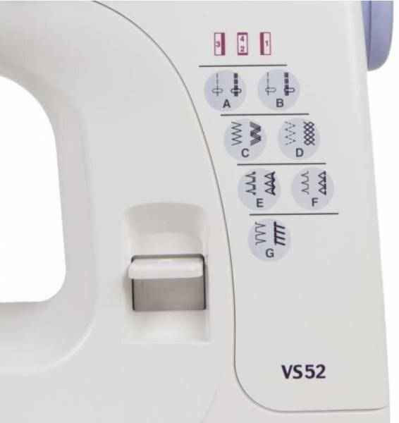 17 швейных операций: прямая строчка (центральное и левое положение иглы), зигзаг, эластичный зигзаг, потайные строчки, трикотажные строчки, оверлочные строчки, строчка мережка, петля-полуавтомат. Регулировка длины стежка от 0 до 4 мм. Регулировка ширины зигзага до 5 мм.