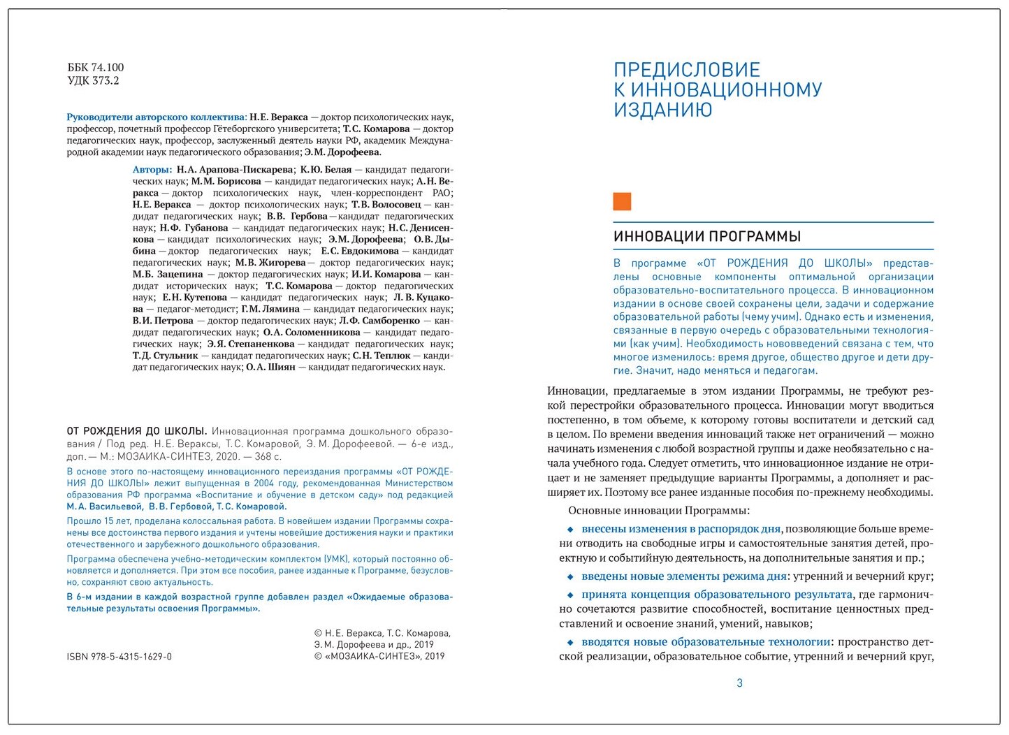 Инновационная программа дошкольного образования (6-ое издание). (Арапова-Пискарева Н. А., Белая К. Ю., Борисова М. М., Веракса А. Н., Веракса Н. Е., Волосовец Т. В., Гербова В. В., Губанова Н. Ф., Денисенкова Н. С., Дорофеева Э. М., Дыбина О. В., Евдокимова Е. С., Жигорева М. В., Зацепина М. Б., Комарова Т. С., Кутепов); Мозаика-Синтез, 2020