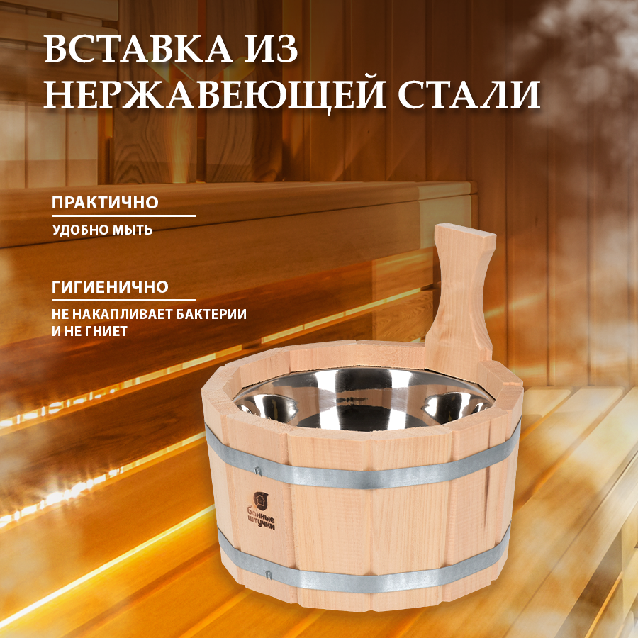 Сервис сравнения цен СкидкаГИД предлагает сравнить цены на товар «Ушат Банные Штучки Шайка с нержавеющей вставкой 3.5л 1 33215»