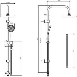 | Комплектация | Душевой шланг, душевая лейка, душевая стойка, верхний душ, держатель для душа, настенный держатель, крепления, инструкция |