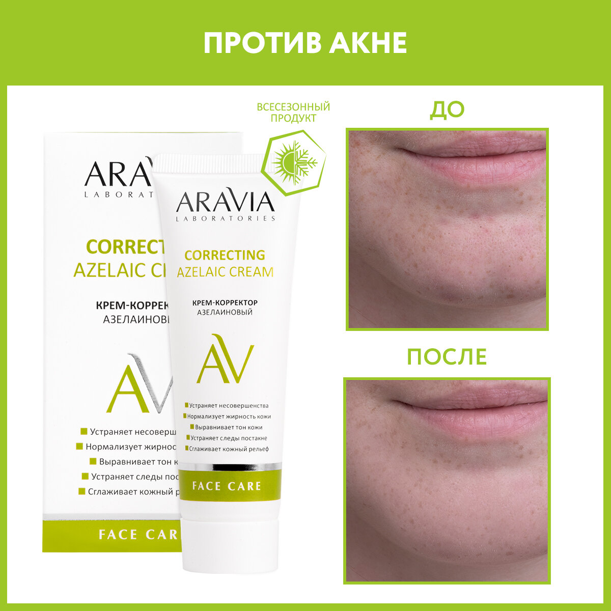 | Проблема | Жирный блеск, Комедоны (черные точки), Неровный цвет лица (постакне), Прыщи, акне, Расширенные поры |