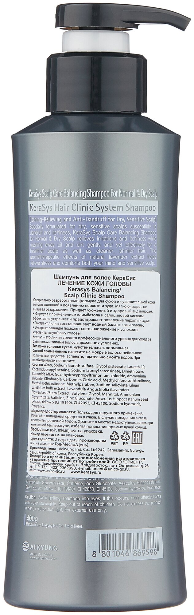 | Полное описание | Шампунь для лечения кожи головы "От перхоти", KeraSys для сухой, чувствительной кожи головы, склонной к появлению перхоти и зуда. Основные свойства: Средства защищают чувствительную кожу головы от внешних раздражителей Природный компонент лаванды успокаивает кожу головы и дарит эффект релаксирующей терапии Высокий процент содержания салицила натрия избавляет от перхоти и зуда Экстракт лилии восстанавливает PH-баланс кожи.Объем: 180 мл. |