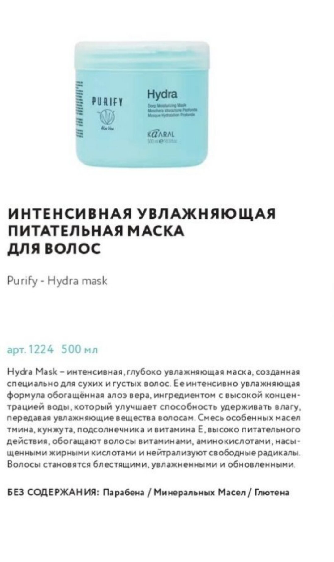 - Обзор на увлажняющую маску для волос с алое вера Kaaral Purify Hydra (Италия)