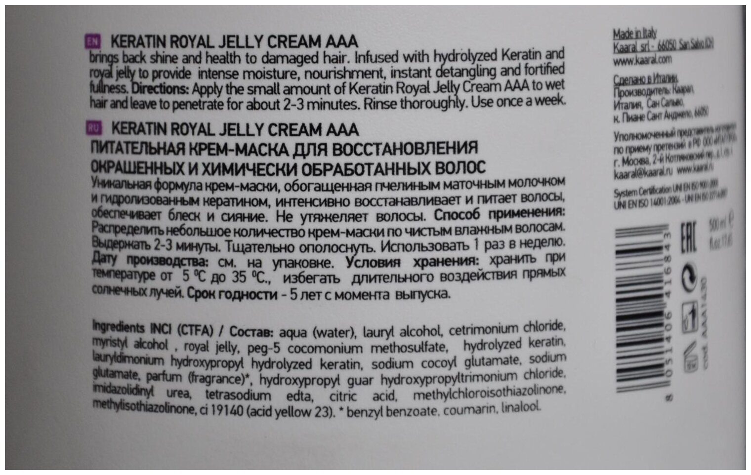 | Коллекция | KAARAL Keratin Color Care |