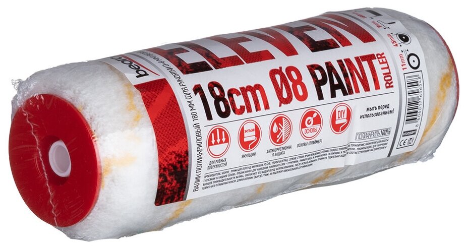 Валик изготовлен из 100% Полиакрила, что позволяет обеспечить высокую впитывающую способность и равномерную краскоотдачу. Предназначен для нанесения масляных, водно-дисперсионных, алкидных, акриловых, НЦ эмалей, а также лаков и грунтовок на алкидной и акриловой основе на все виды поверхностей. Используется для внутренних и наружных отделочных работ. Идеально подходит для нанесения грунтовок.