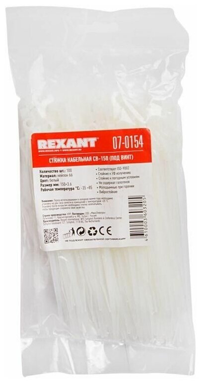 Хомуты Rexant 07-0154 3.6х150мм 100шт белый