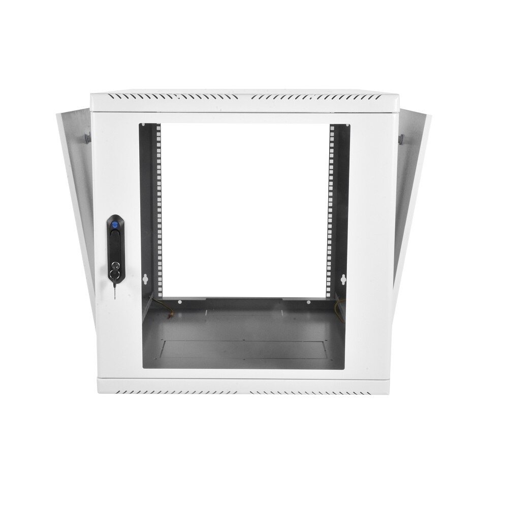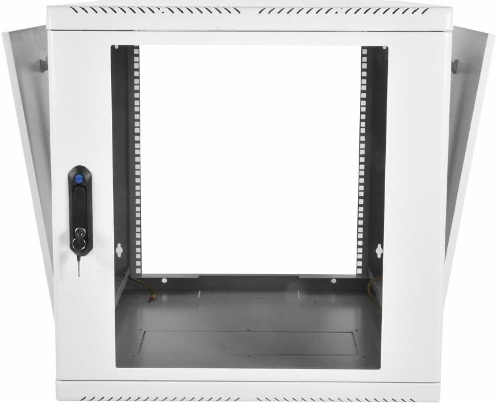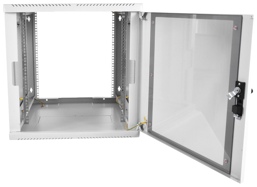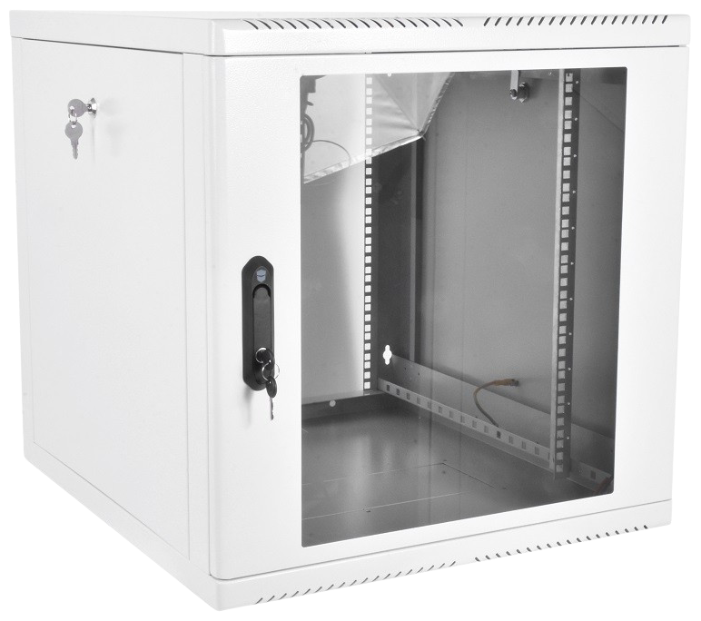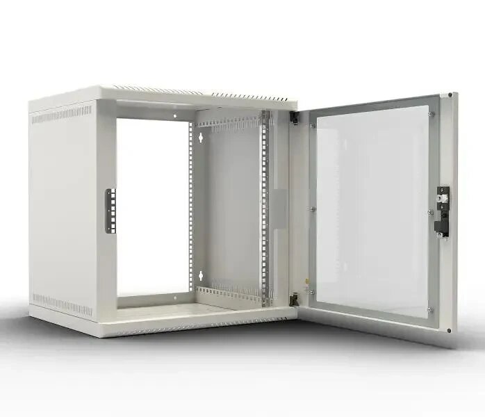 Настенный шкаф 19" серии ШРН предназначен для размещения активного и пассивного телекоммуникационного оборудования. Усиленный точечный замок с поворотной ручкой увеличивает жесткость фиксации двери в закрытом положении и защиту от несанкционированного доступа, а также обеспечивает удобство при её открывании.