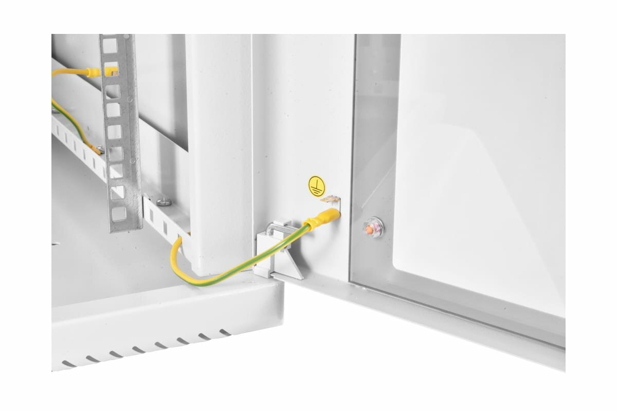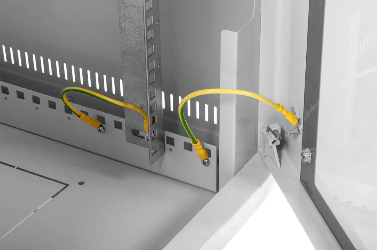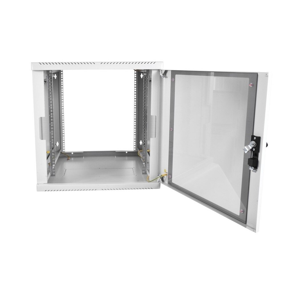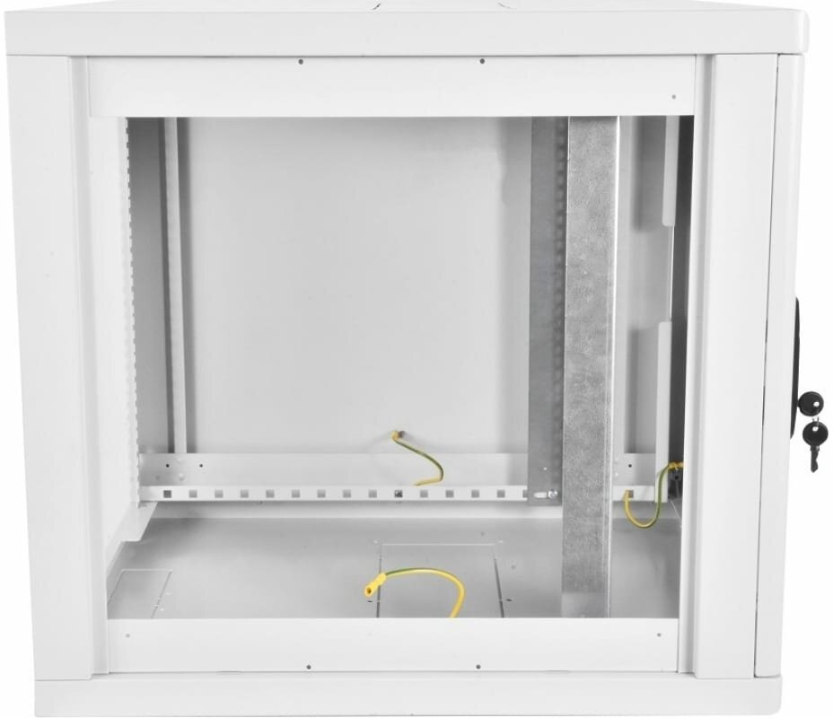 Настенный шкаф 19" серии ШРН предназначен для размещения активного и пассивного телекоммуникационного оборудования. Усиленный точечный замок с поворотной ручкой увеличивает жесткость фиксации двери в закрытом положении и защиту от несанкционированного доступа, а также обеспечивает удобство при её открывании.