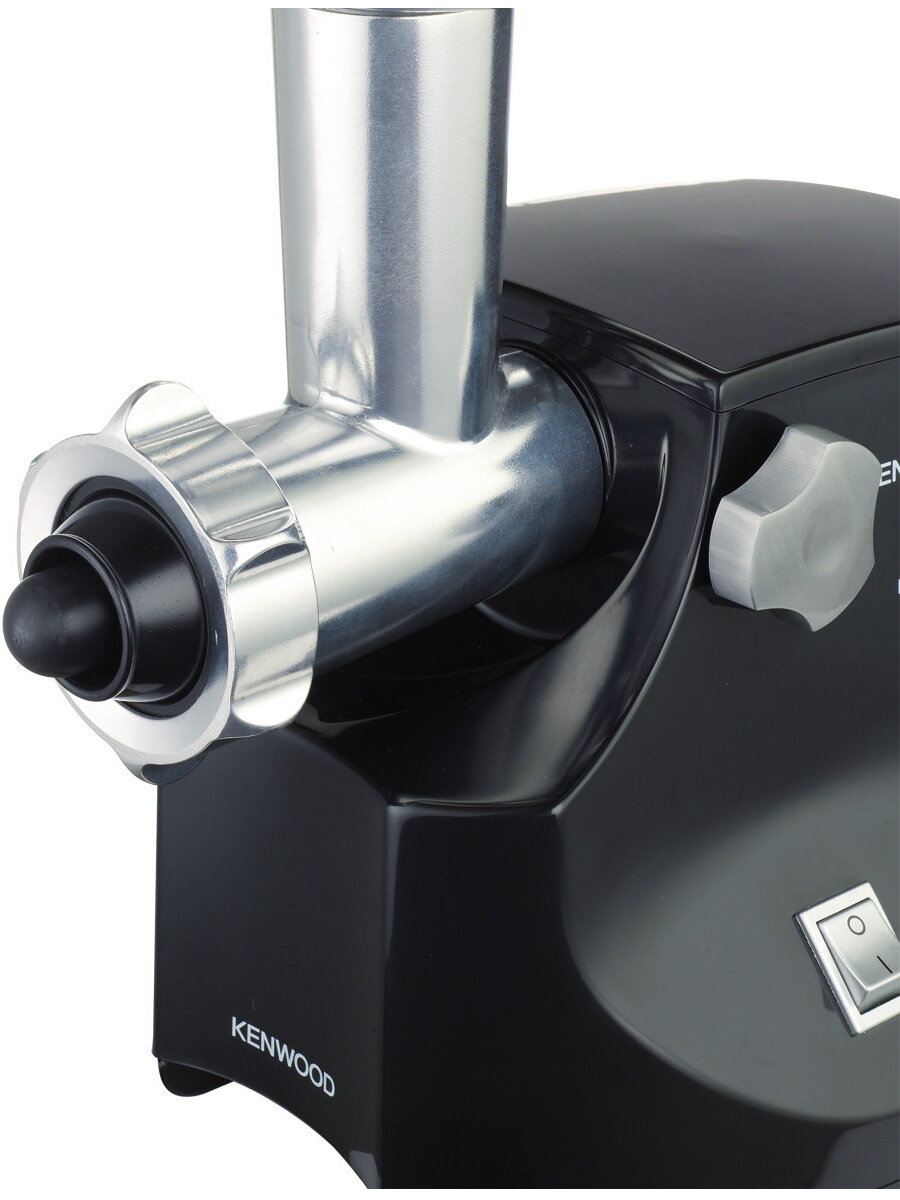 опыт эксплуатации один год. в первый раз при использовании самой мелкой сетки (делали фарш для ребенка) перестал выходить фарш через полминуты. пришлось чистить и впредь при перекрутке мяса для ребенка пропускать сначала через самую крупную сетку, а уже потом через мелкую. средняя и крупная сетка - мясо проходит хорошо. в наборе хороший чугунный нож. есть еще насадки для колбас (пока не использовали), которые прячутся в толкателе для мяса. шумит прилично, мощность хорошая, есть реверс. после первого раза мытья в посудомойке сошел хром с отдельных деталей (огорчило). да, и с японским производителем аудиотехники KENWOOD, ничего общего.