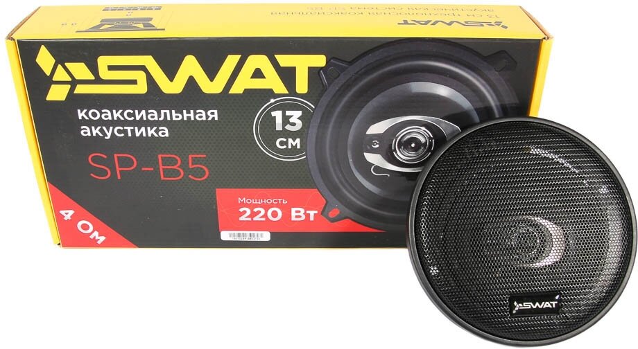 Пятидюймовая коаксиальная акустика имеет классическую конструкцию на штампованной стальной раме с ферритовым магнитом. Три полосы включают в себя мидбас, твитер и супертвитер, воспроизводящий самый верхний край слышимого диапазона. Преимущество такой конструкции всё в одном. Нет необходимости в приобретении и установке отдельных кроссоверов и высокочастотников, достаточно стать обладателем SWAT .