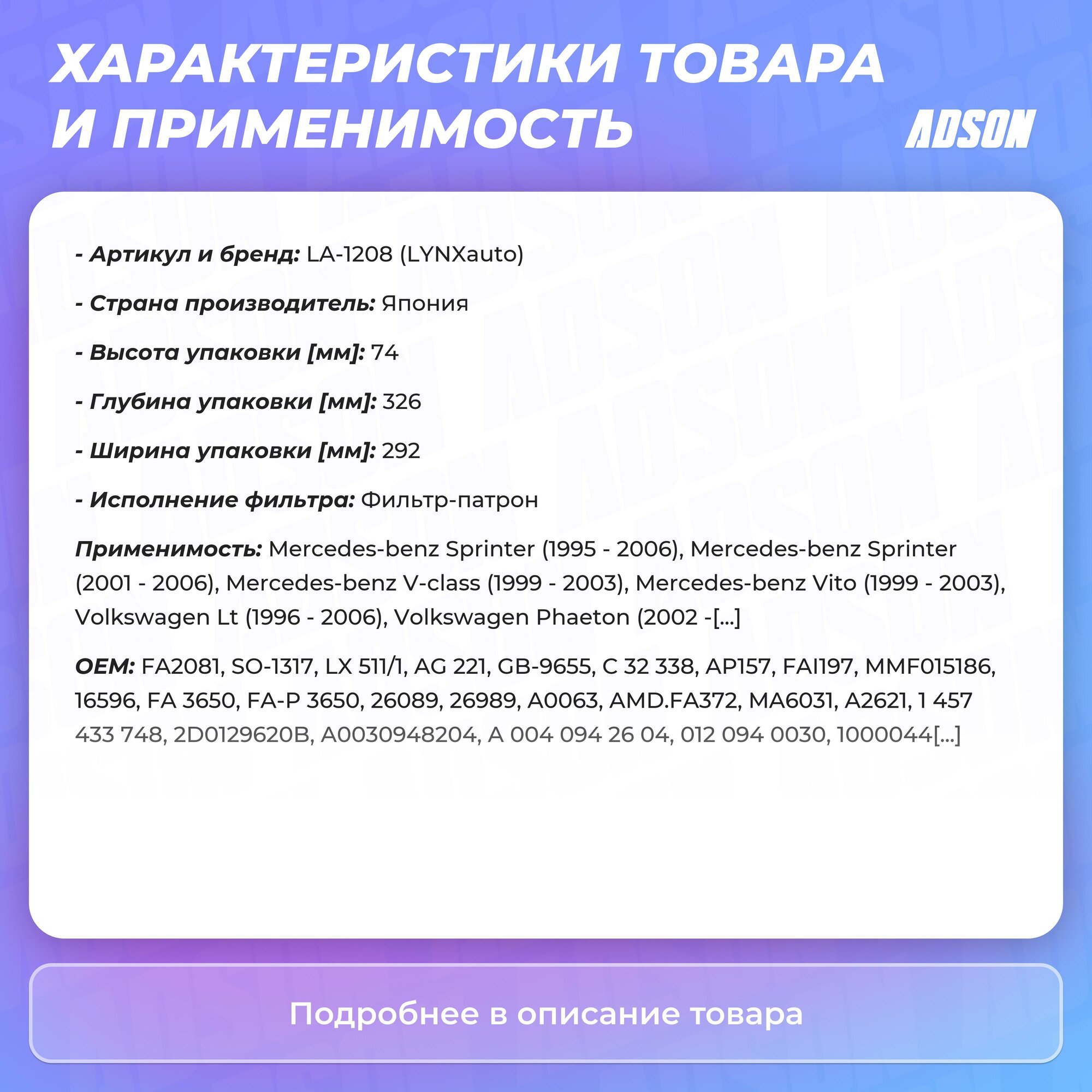 Фильтры ДВС Lynxauto