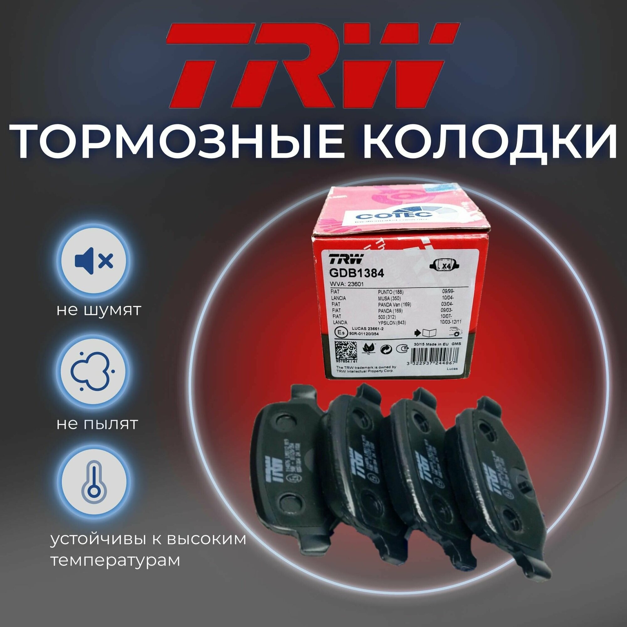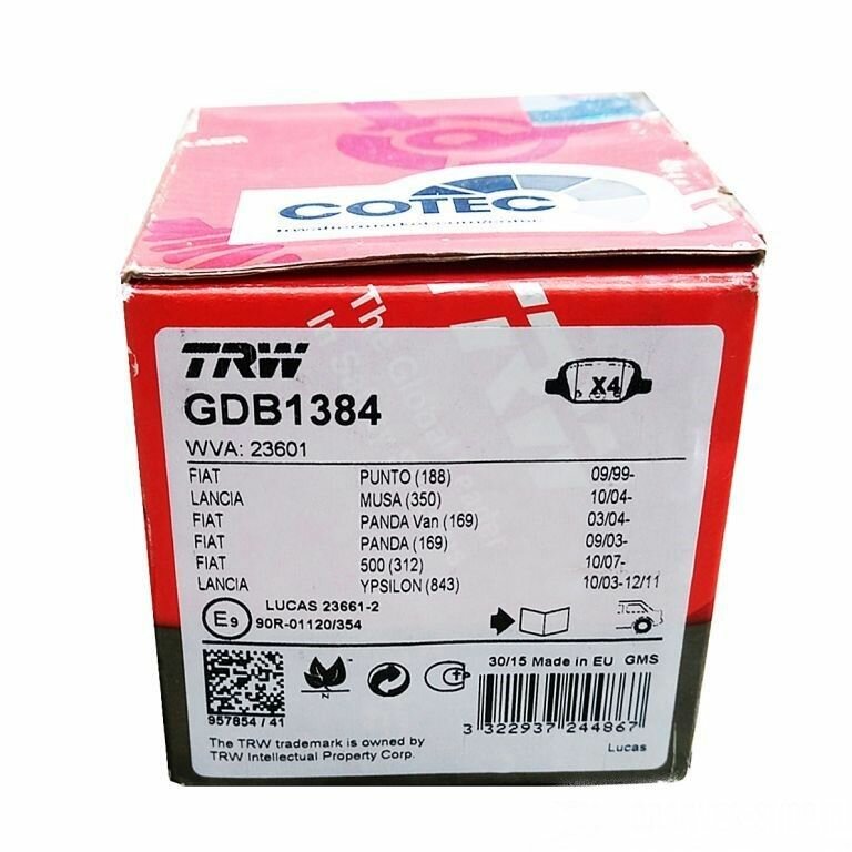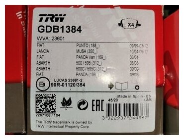 - ТОРМОЗНЫЕ КОЛОДКИ НА ЗАДНИЕ ДИСКОВЫЕ ТОРМОЗА TRW GDB1384