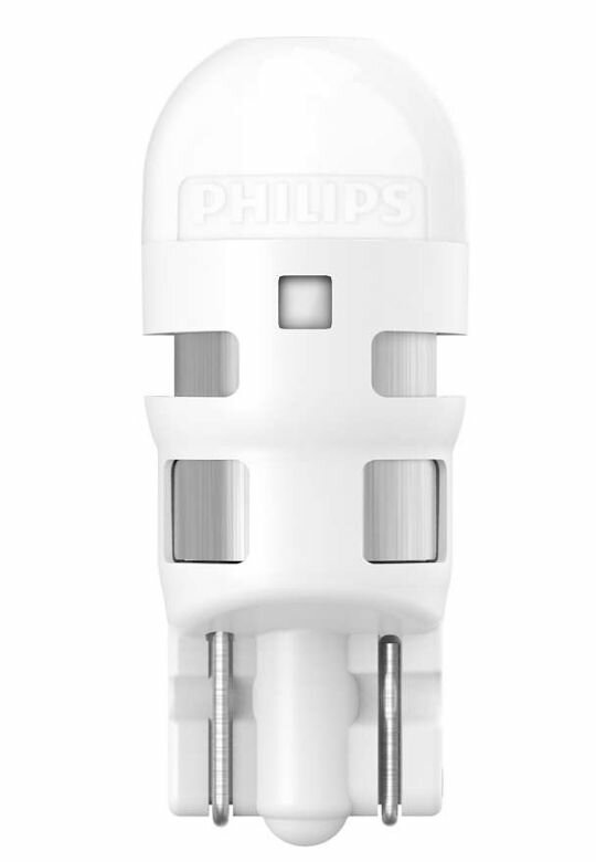 Автомобильные светодиодные лампы из серии Ultinon от компании Philips послужат хорошей заменой заводскому освещению, с улучшением светоотдачи, при потреблении электроэнергии в десять раз меньше. Используются во внешнем переднем освещении, для габаритов и поворотов и в заднем, для стоп-сигнальных огней. При равномерном распределении света и ярком излучении они помогают своевременно сообщить о своих намерениях другим участникам дорожного движения, во избежание аварийных ситуаций, не ослепляя при этом водителя. Они включаются мгновенно, что при большой скорости движения может иметь большое преимущество. Используются еще и во внутреннем освещении салона, приборной панели и бардачка. Конструкция виброустойчивая, с хорошей теплопроводностью. Излучает белый свет с желтым оттенком.