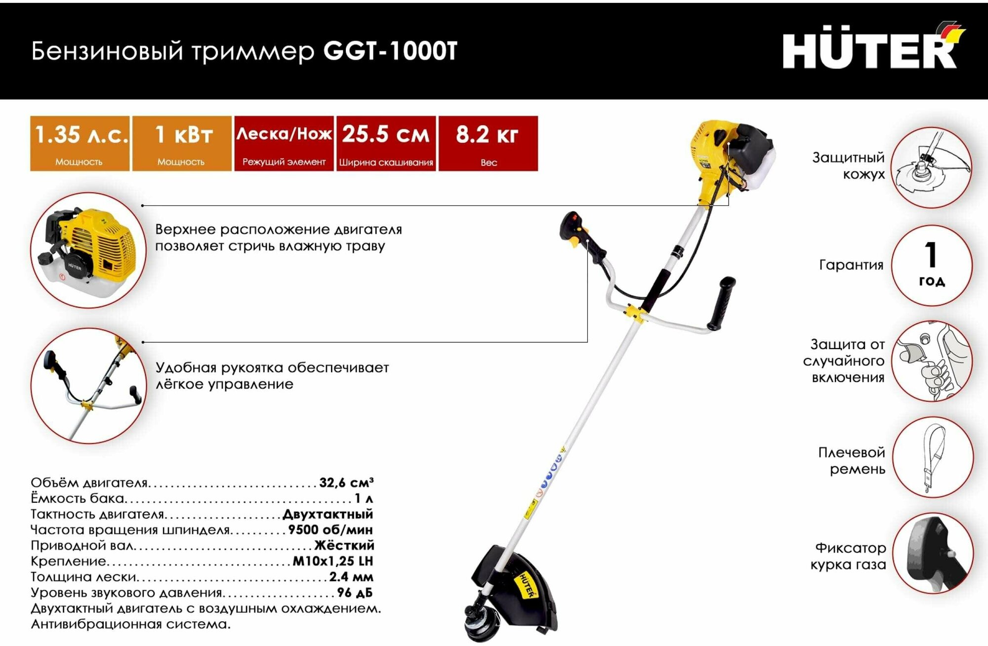 Триммер бензиновый HUTER GGT-1000S