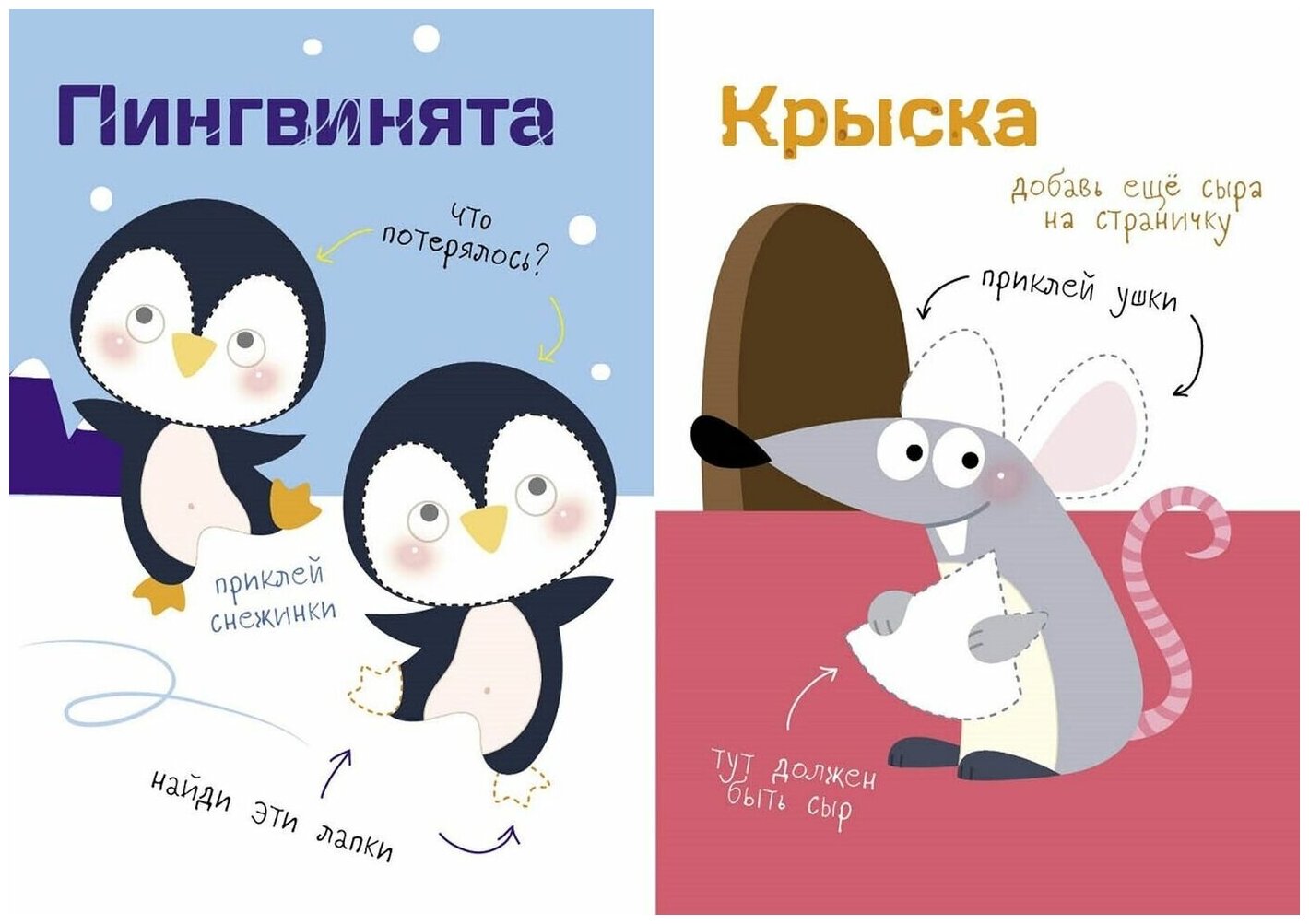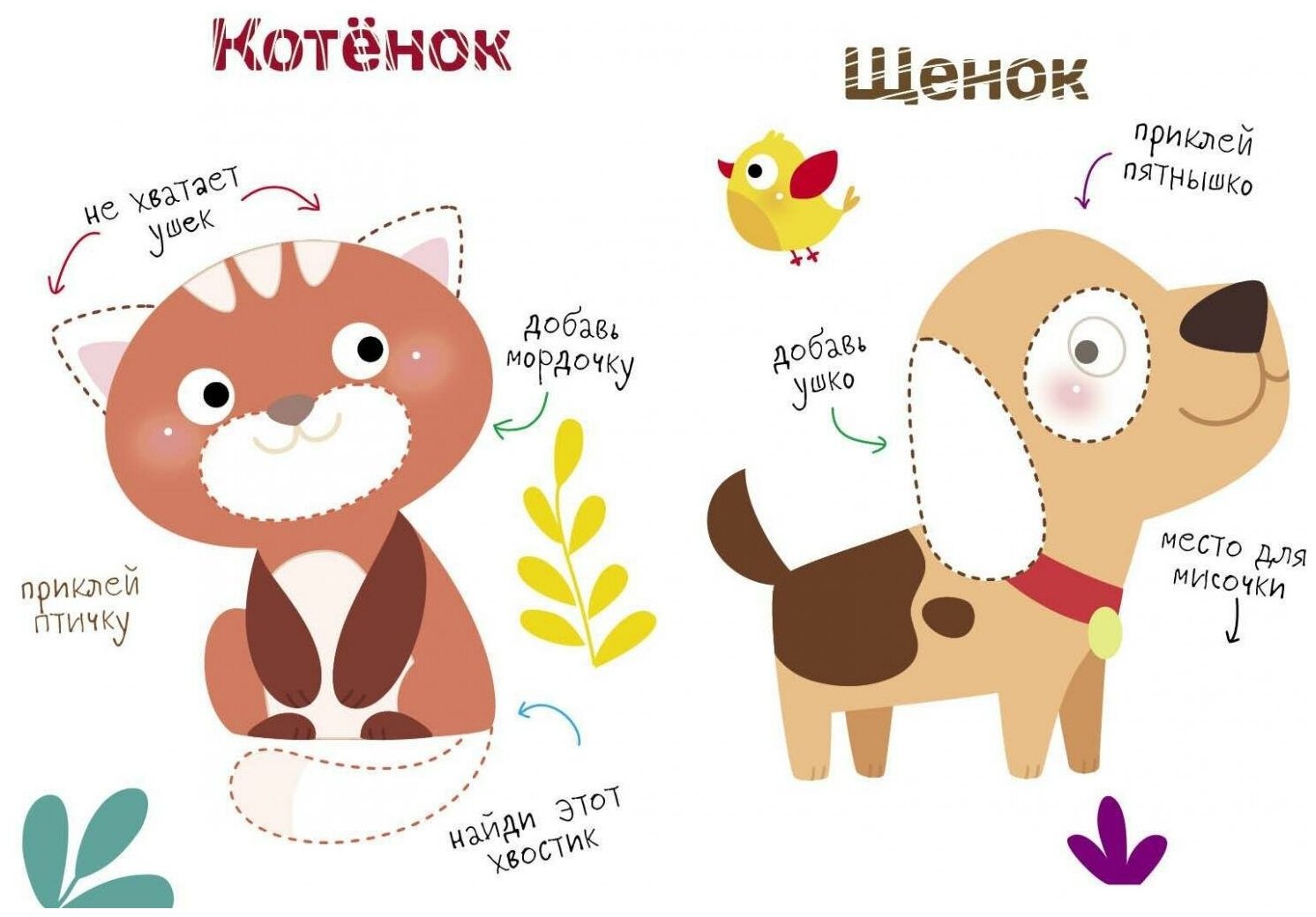 Привет, малыш! Зверятам из этой книжки очень нужна твоя помощь. Они потеряли самое важное: кто-то - ушки, кто-то - лапки, а кто-то даже животик!
