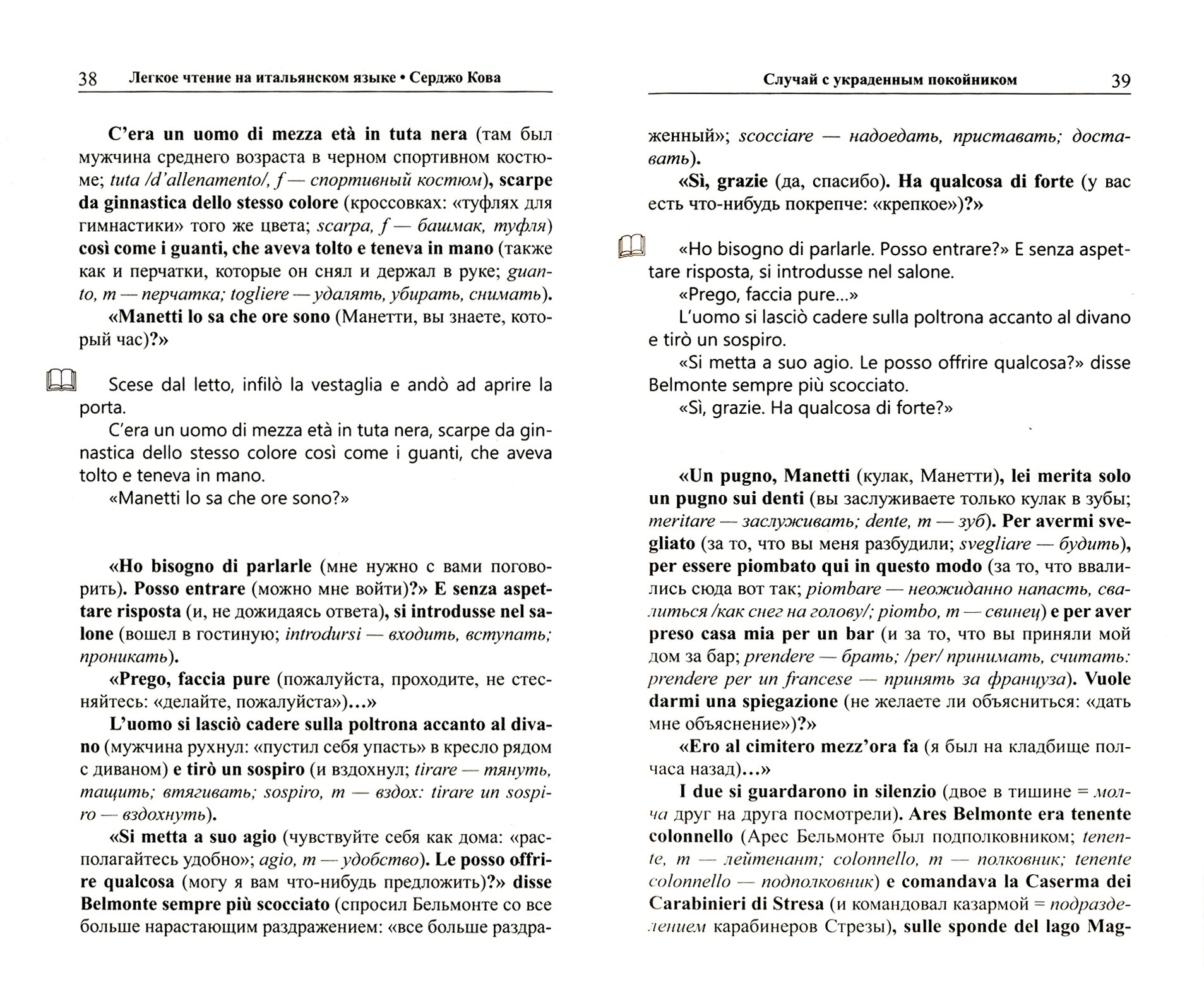 В книгу вошли избранные рассказы одного из признанных мастеров итальянского детектива Серджо Кова, в том числе несколько случаев из практики любимого героя писателя, подполковника Ареса Бельмонте. Простой современный язык, динамичный стиль изложения, обилие диалогов позволяют рекомендовать данный сборник на самых ранних этапах овладения итальянским языком.