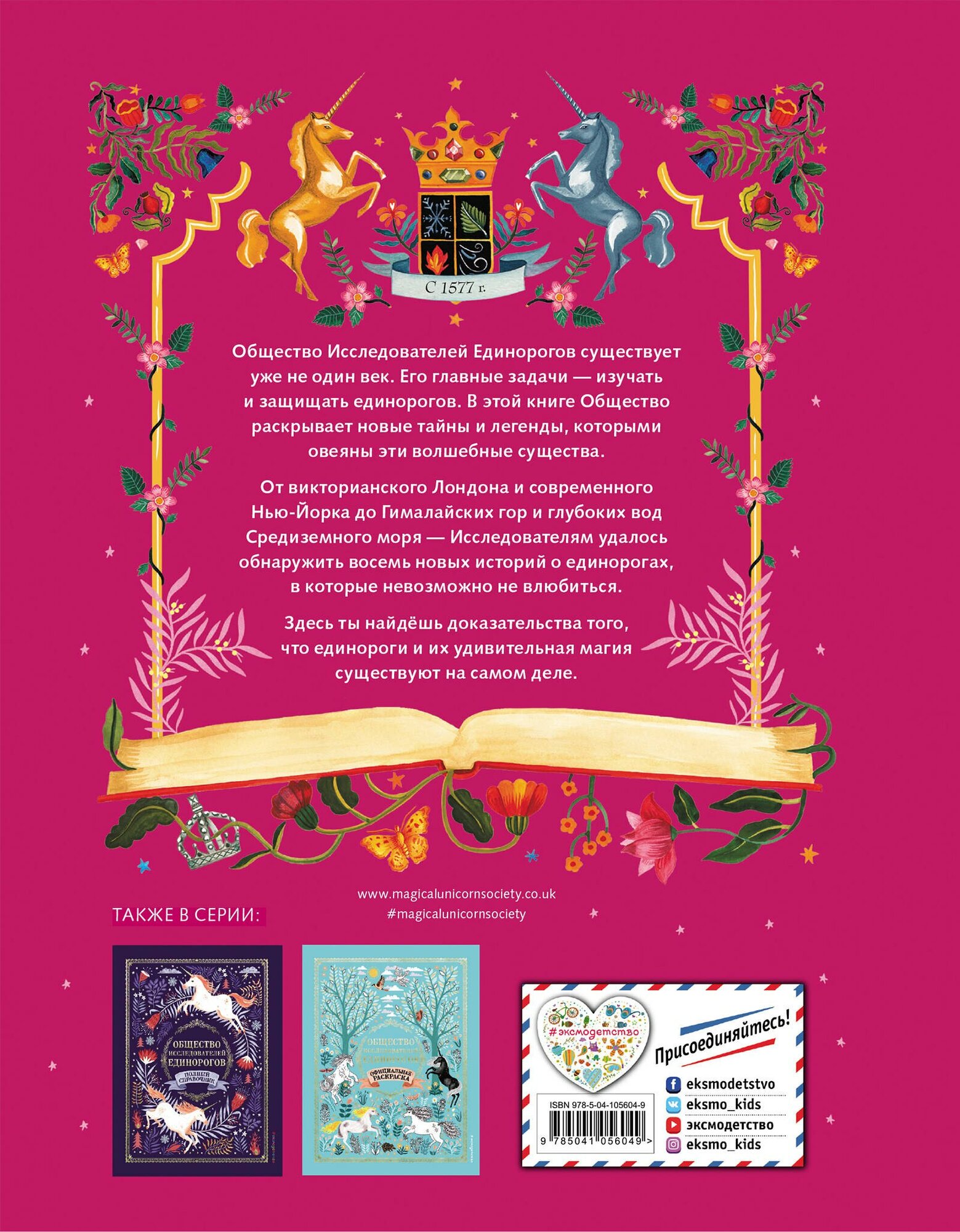 Общество Исследователей Единорогов существует уже не один век. Его главные задачи - изучать и защищать единорогов. В этой книге Общество раскрывает новые тайны и легенды, которыми овеяны эти волшебные существа.