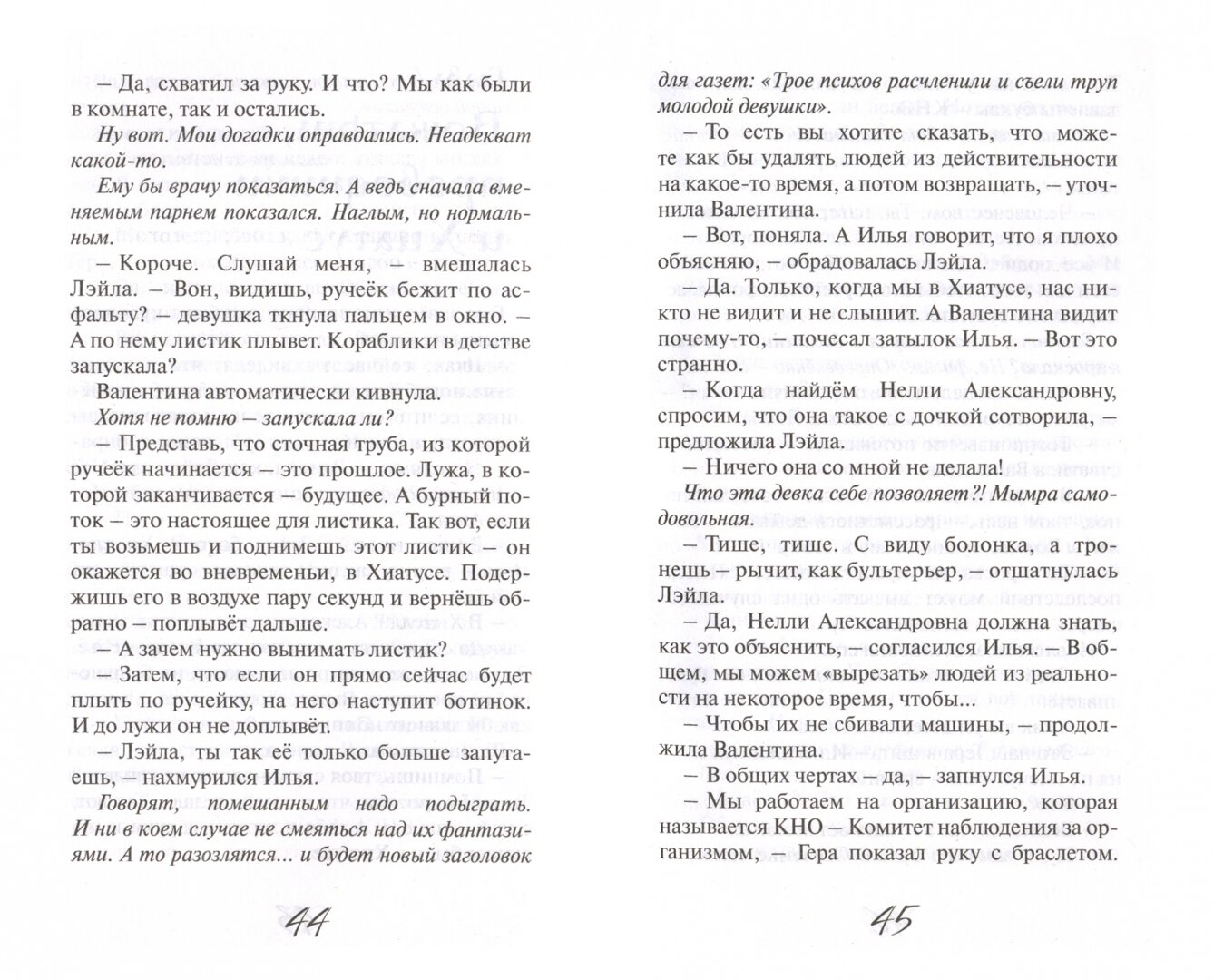 Когда я получила эту книгу ,то думала ,что это очередная современная сказка ,но..... Сюжет захватил и не отпустил до конца прочтения .Как тонко автору удалось провести грань между реальностью и фантастикой .Исчезновение человека -это реальность ,а вот КНО (комитет наблюдений за организмом ) есть или нет .Ребята ,которые спасают людей ,унося их в Хиатус .Они есть или это вымысел Но кто сказал ,что у судьбы не может быть помощников .Вроде всё правильно ,но автор снова заставляет сомневаться ."Иногда чья-то жизнь может вылиться в спасение многих в будущем".Обязательно ли обладать сверхмагическими силами ,чтобы остановить трагедию .Мария Тович показывает ,что нет .Вот Тинча отговаривает женщину от самоубийства ,но Гера (ясновидец) спокойно так говорит ,что женщина эта окажется в лапах сектантов и отпишет им свой дом. Если бы каждый думал ,что его поступки определяют чужие судьбы,возможно ,мы могли бы избежать многих трагедий .В книге есть всё ,что может понравиться подростку :приключения ,детективное расследования,любовь большая или уничтожающая ,возвышающая или убивающая.Тонкая еле заметная грань жизнь и вымысел.Остаётся послевкусие :ведь в жизни каждого был случай ,если бы чуть- чуть ..Может кто-то остановил тебя ,дал тебе ещё один шанс на жизнь ,на добрые дела или......