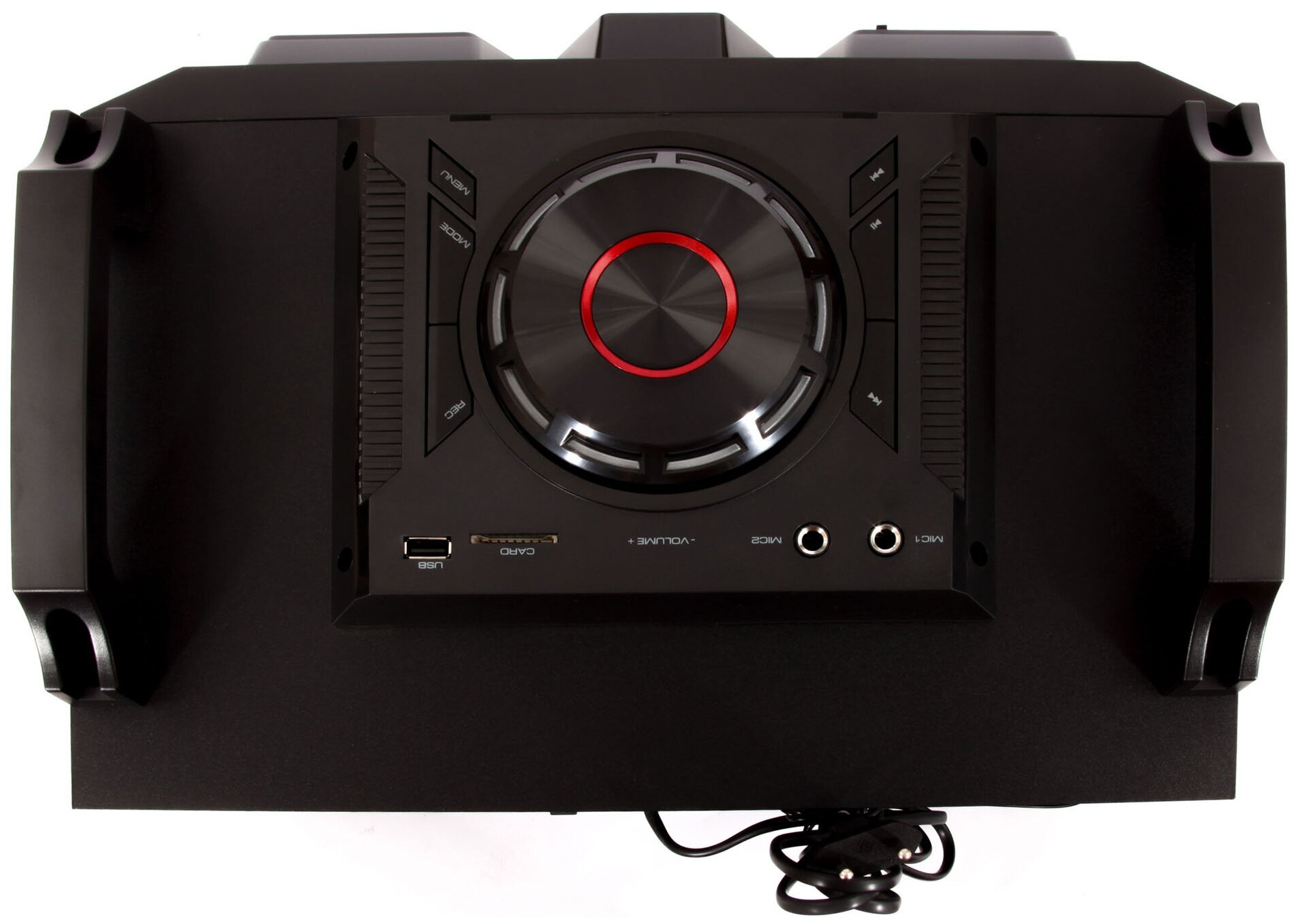 Суммарная мощность: 110 Вт (RMS). Эквалайзер, караоке. Тип карты памяти: SD, интерфейс USB, Bluetooth, пульт ДУ. Тюнер FM. ЖК-дисплей. Поддерживаемые аудио форматы: MP3/WMA/FLAC.
